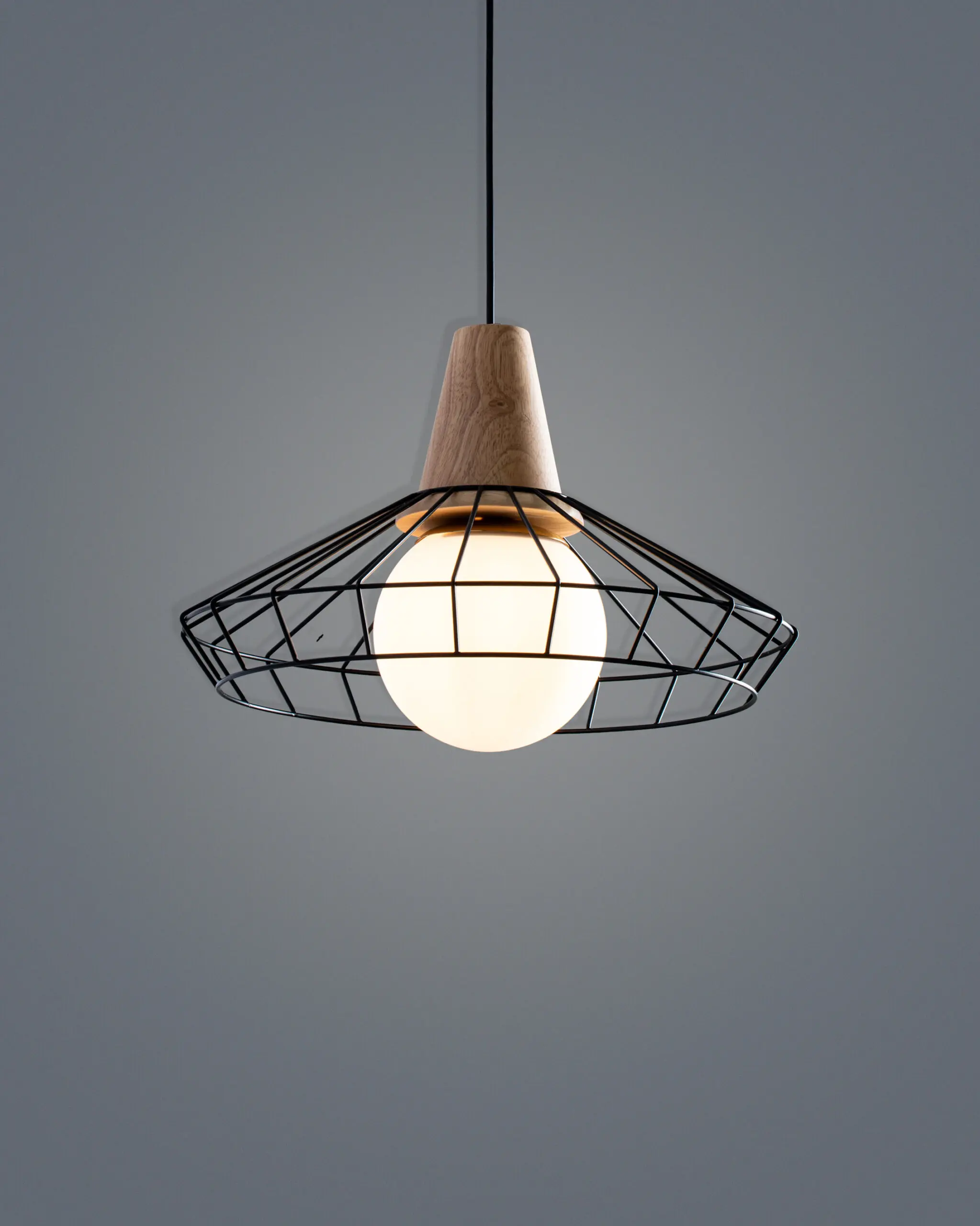 Đèn Thả Trần Lồng Sắt Đen Phối Gỗ Tự Nhiên VRG-TCF27