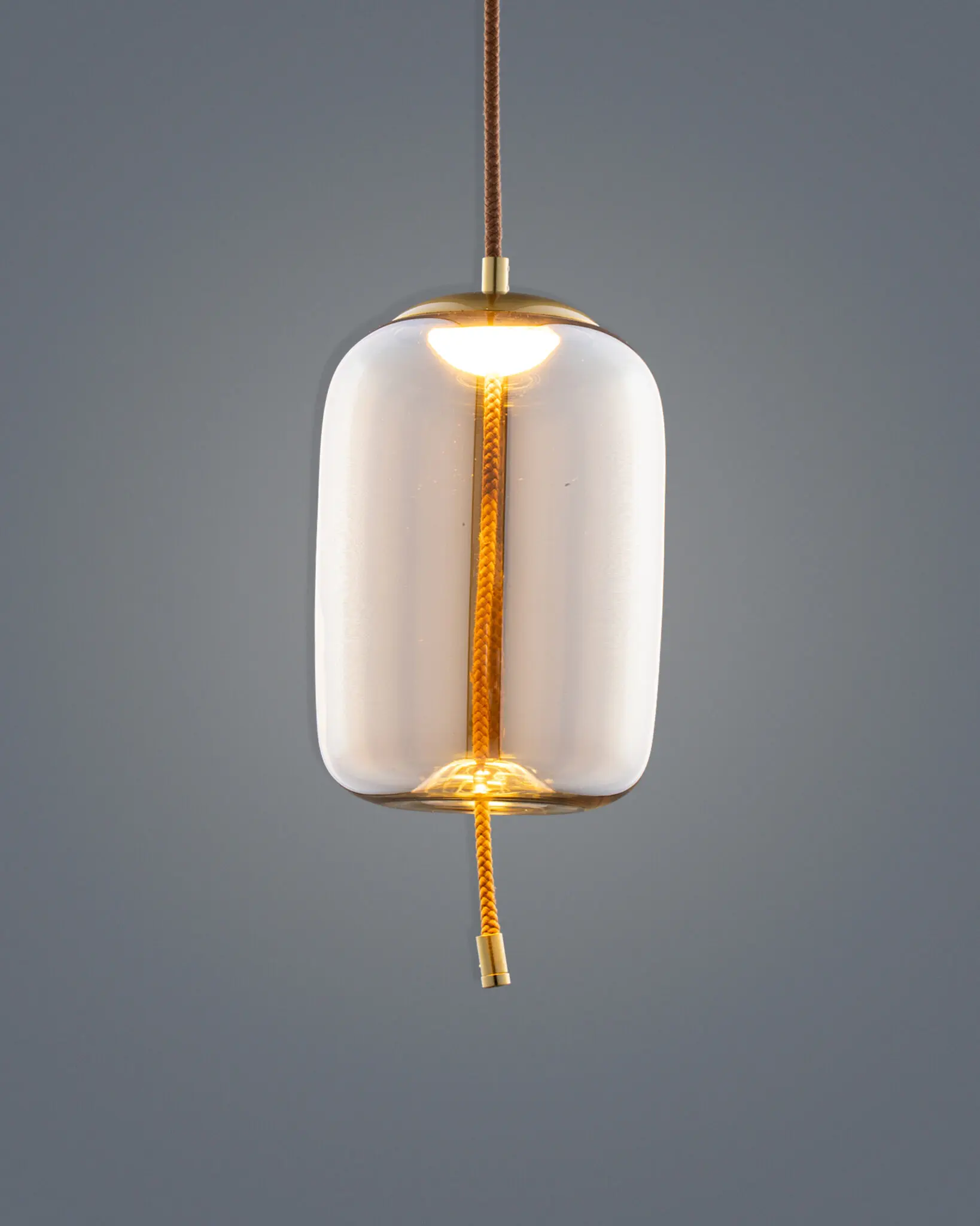 Thiết kế hình khối độc đáo: Thân đèn được tạo hình mềm mại, cân đối. Khi treo lơ lửng giữa không trung, chiếc đèn thả thủy tinh trông như một viên ngọc quý, thu hút mọi ánh nhìn và làm mềm đi những đường nét cứng nhắc của kiến trúc căn phòng.