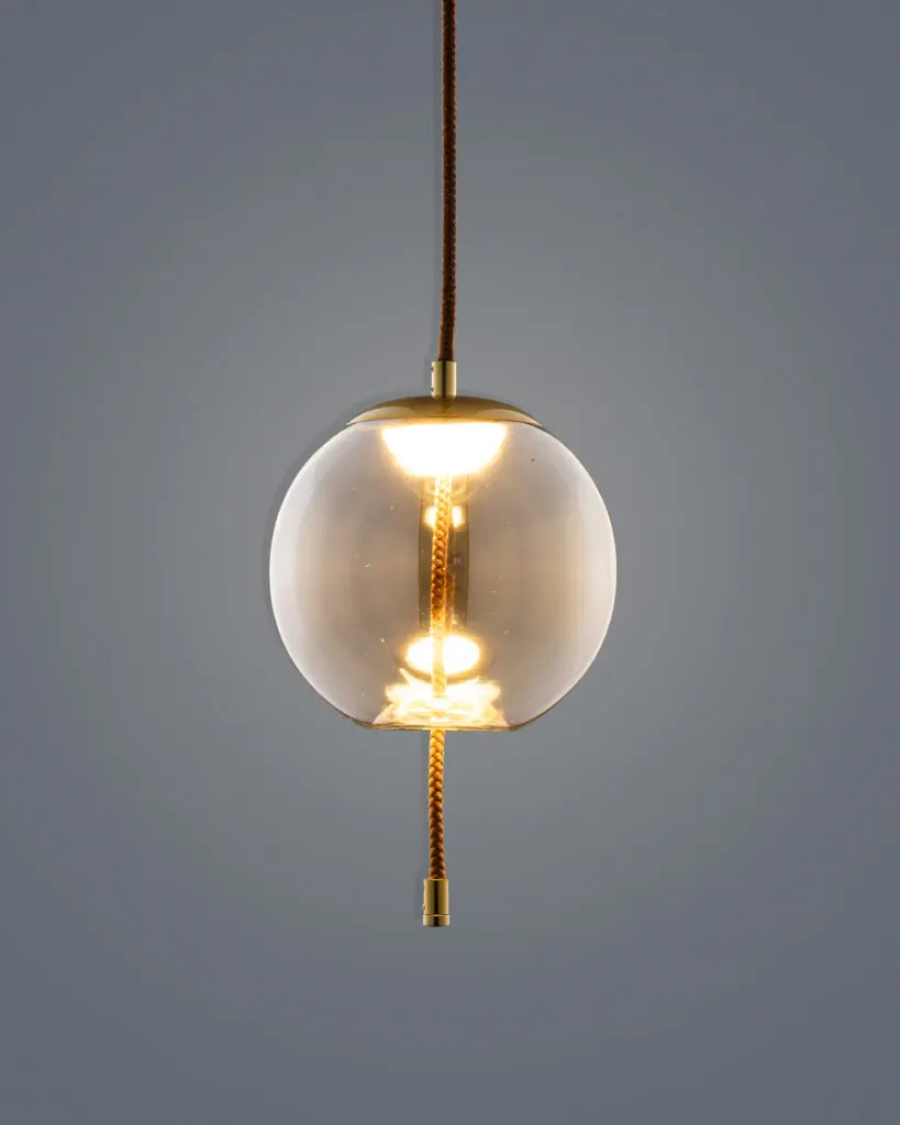 Đèn Thả Thủy Tinh Màu Trà Hình Cầu Phối Dây Thừng VRG-THCN21920B-V2