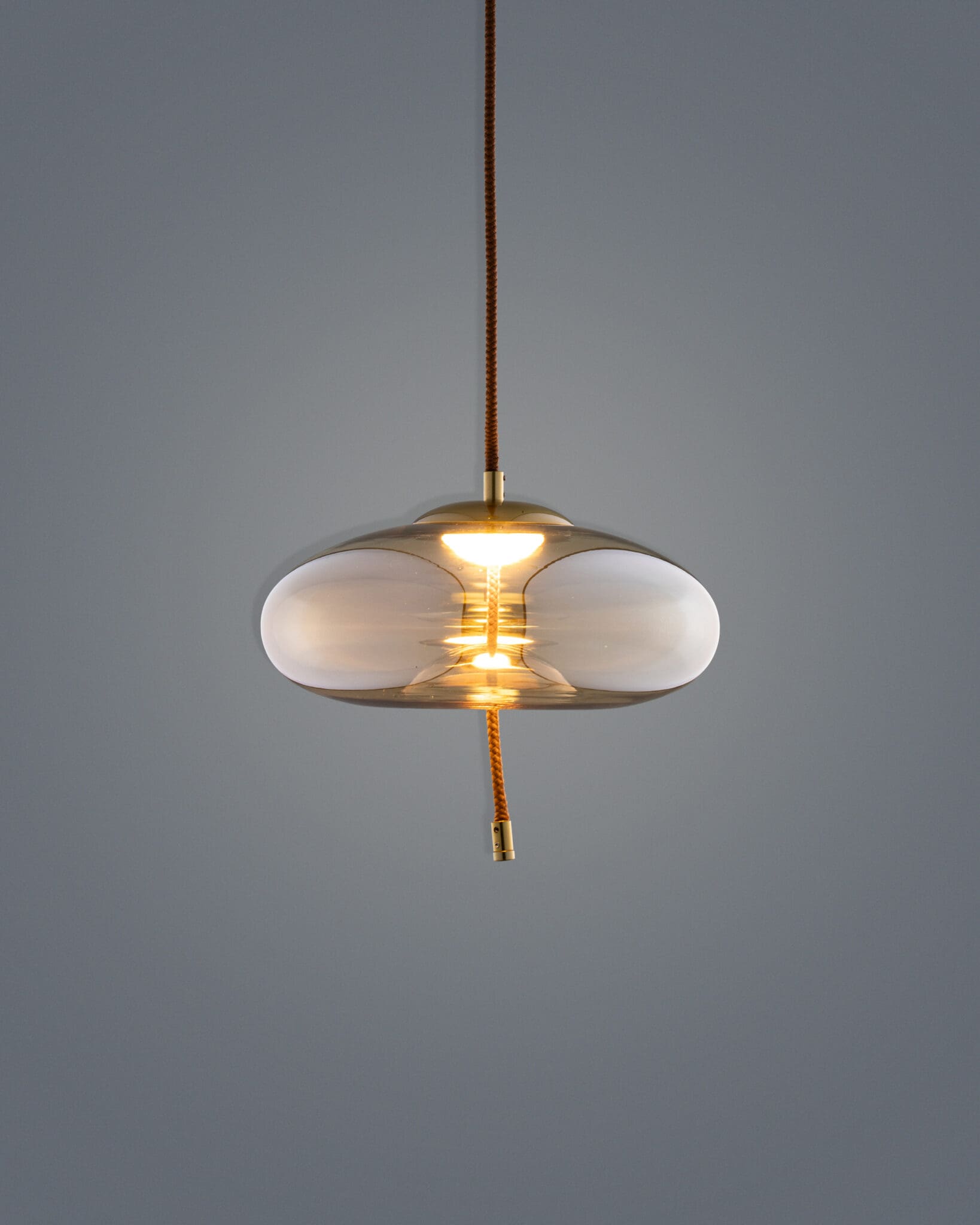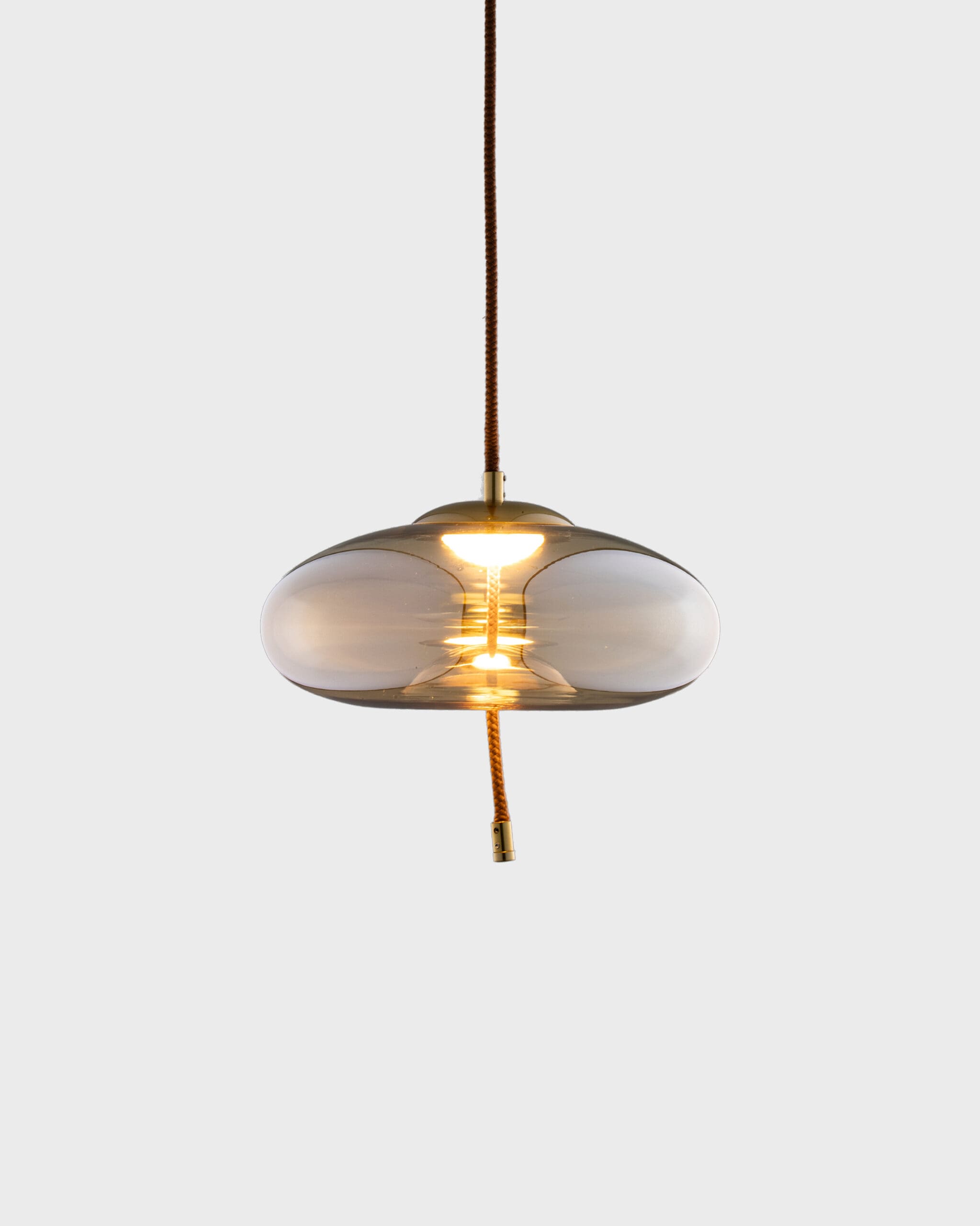Được sinh ra để tạo điểm nhấn, đèn thả thủy tinh dáng bát dẹt phối dây thừng VRG-TKLE3176-3 được gia công tỉ mỉ từng chi tiết.