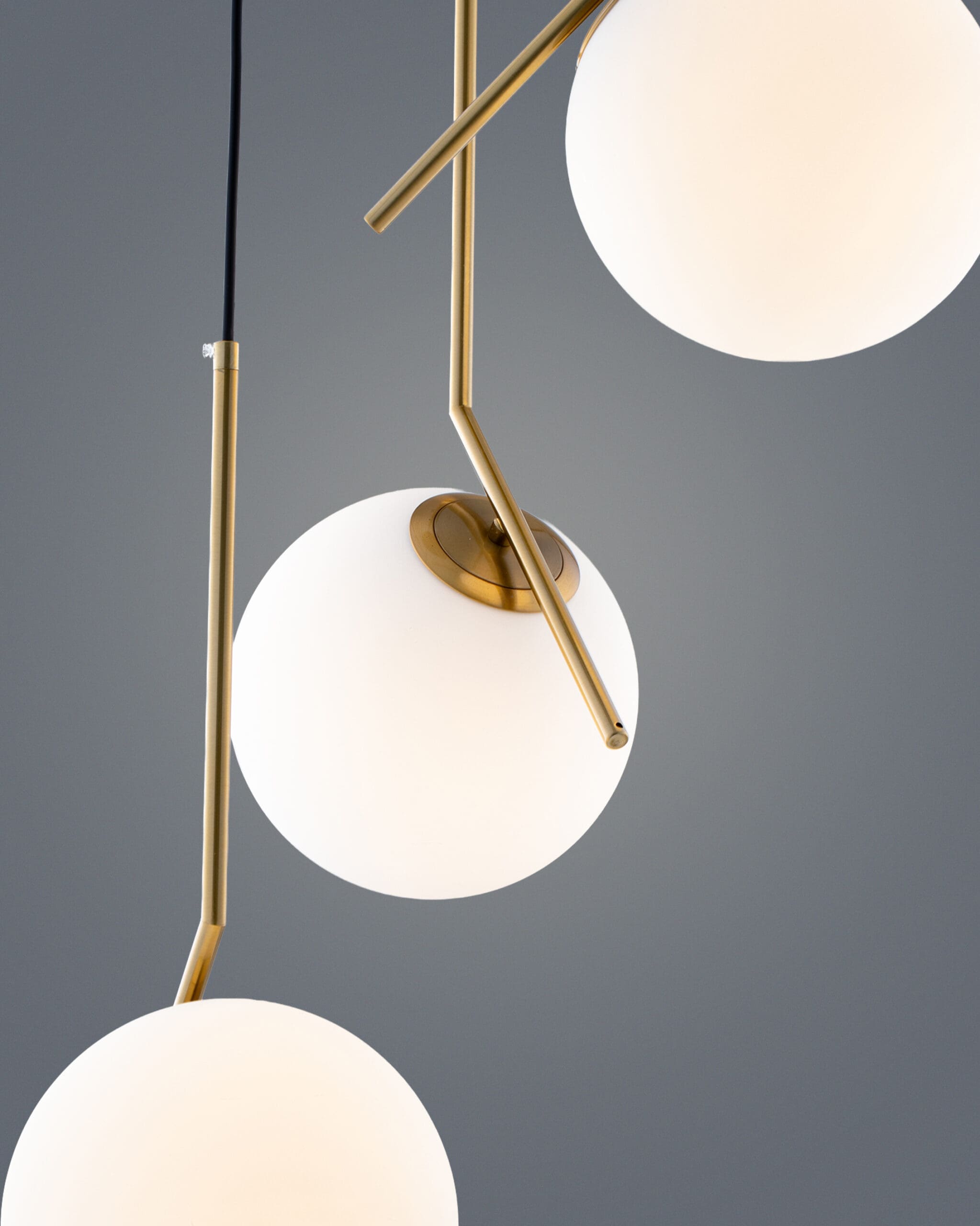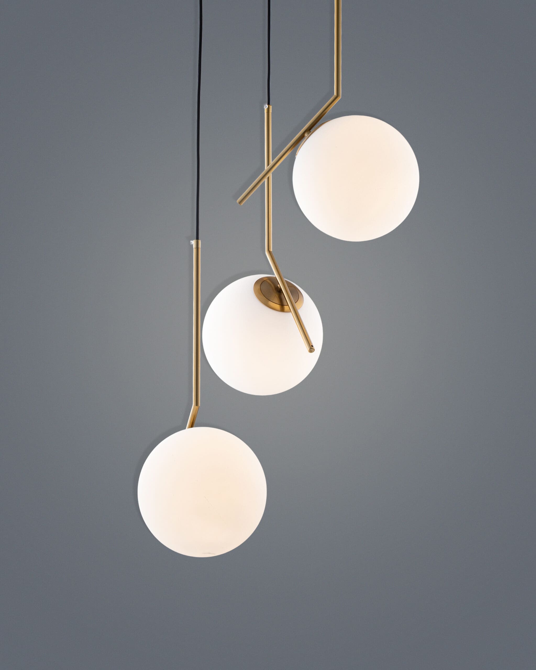 Nếu một quả cầu đơn lẻ mang vẻ đẹp tĩnh lặng, thì bộ 3 đèn thả bóng tròn lại tạo nên nhịp điệu sinh động cho không gian.