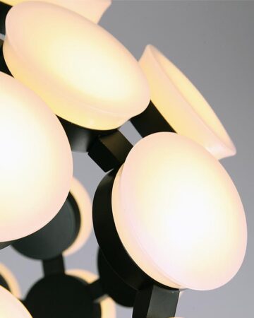 Mẫu đèn thả nghệ thuật lấy cảm hứng từ sự đối nghịch giữa 2 màu sắc đen và trắng, vừa gắn kết vừa riêng biệt. Đèn được kết từ nhiều khối tròn nhỏ trên một khối tròn lớn. Đặc biệt  khối tròn lớn chưa được tạo thành hoàn chỉnh, mô phỏng hình ảnh vũ trụ đang được hình thành.