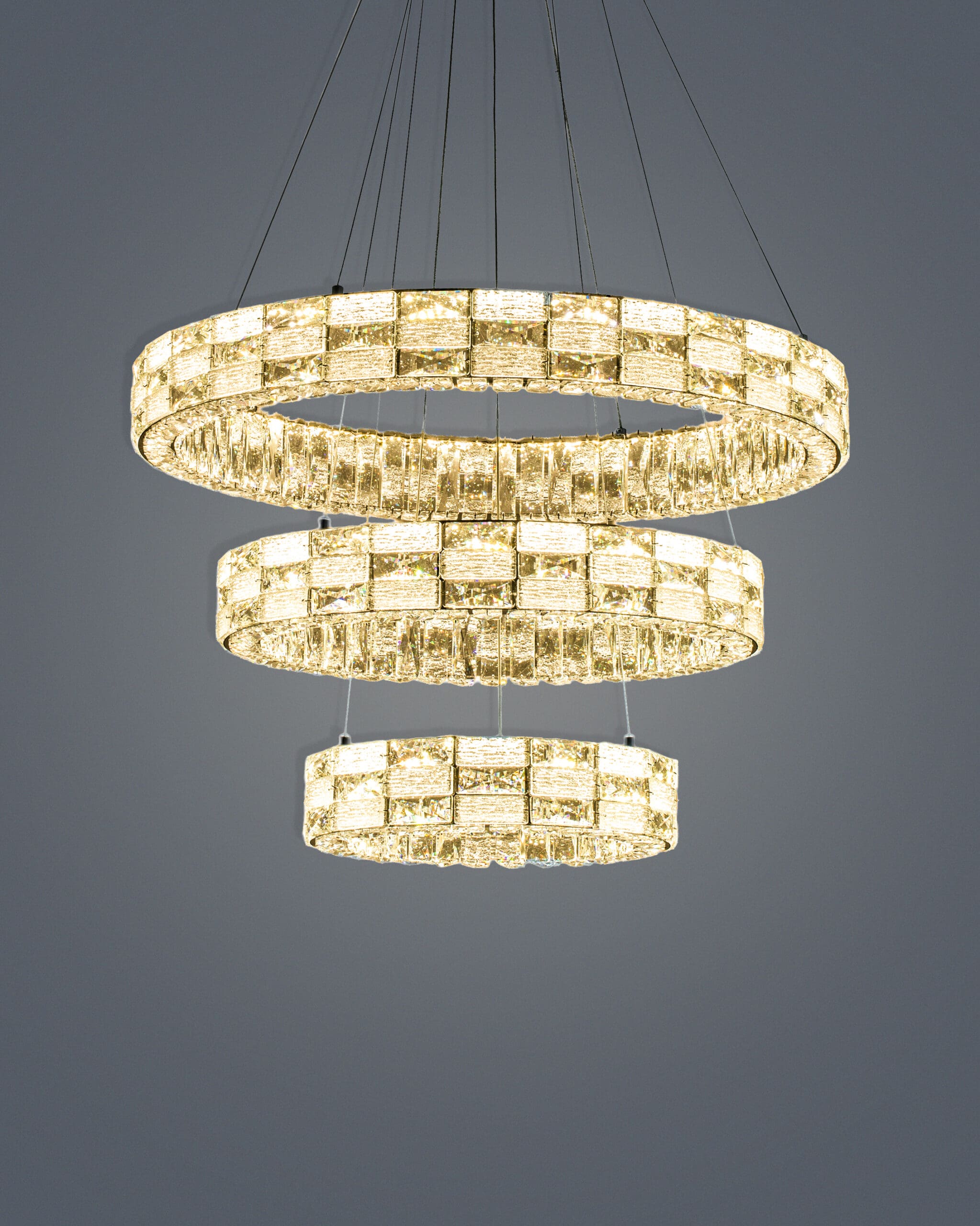 Đèn Thả Pha Lê 3 Tầng Khối Vuông Sang Trọng VRG-TH8807