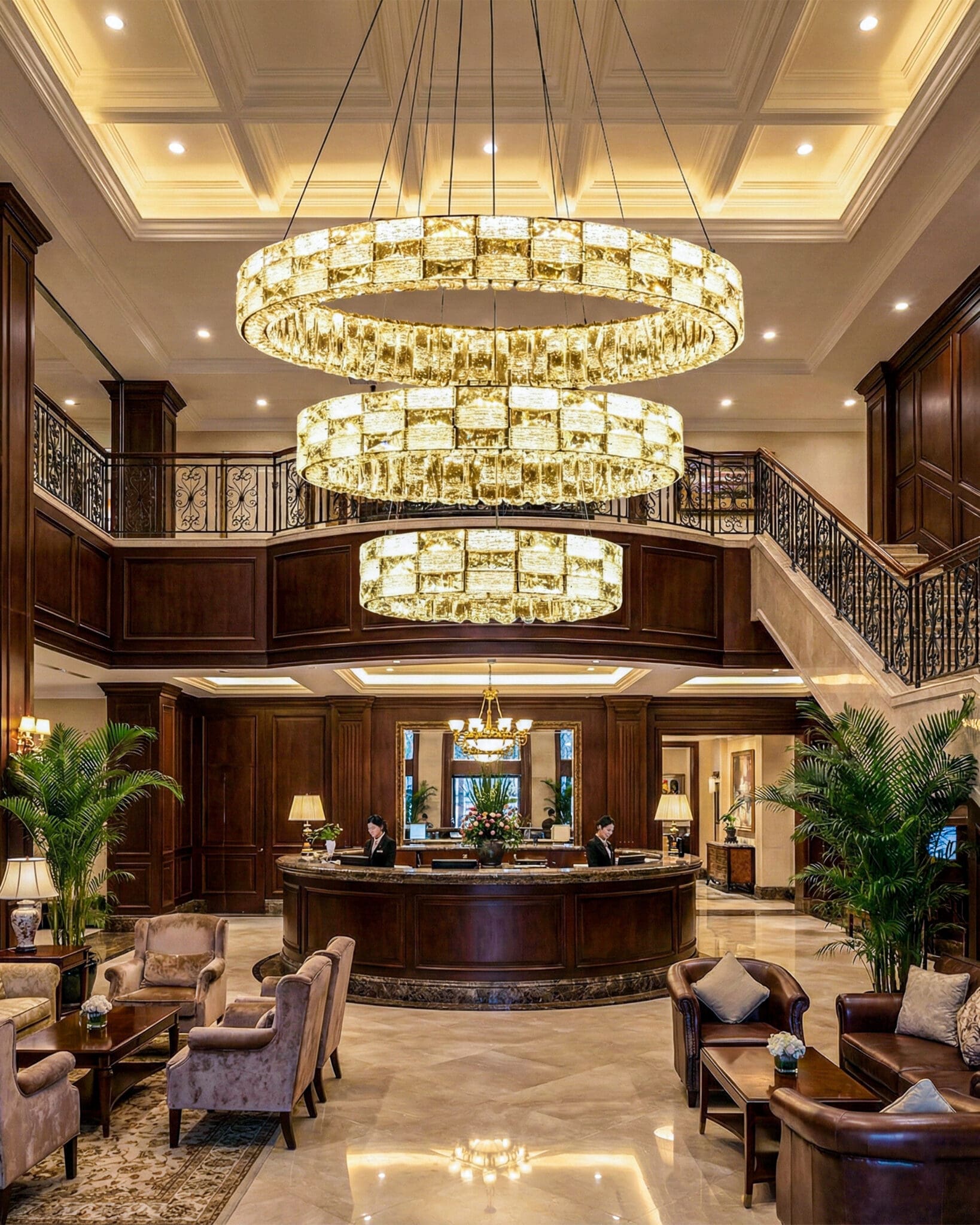 Sảnh khách sạn / Nhà hàng: Tạo ấn tượng về sự xa hoa và hiếu khách cho các công trình dịch vụ cao cấp.