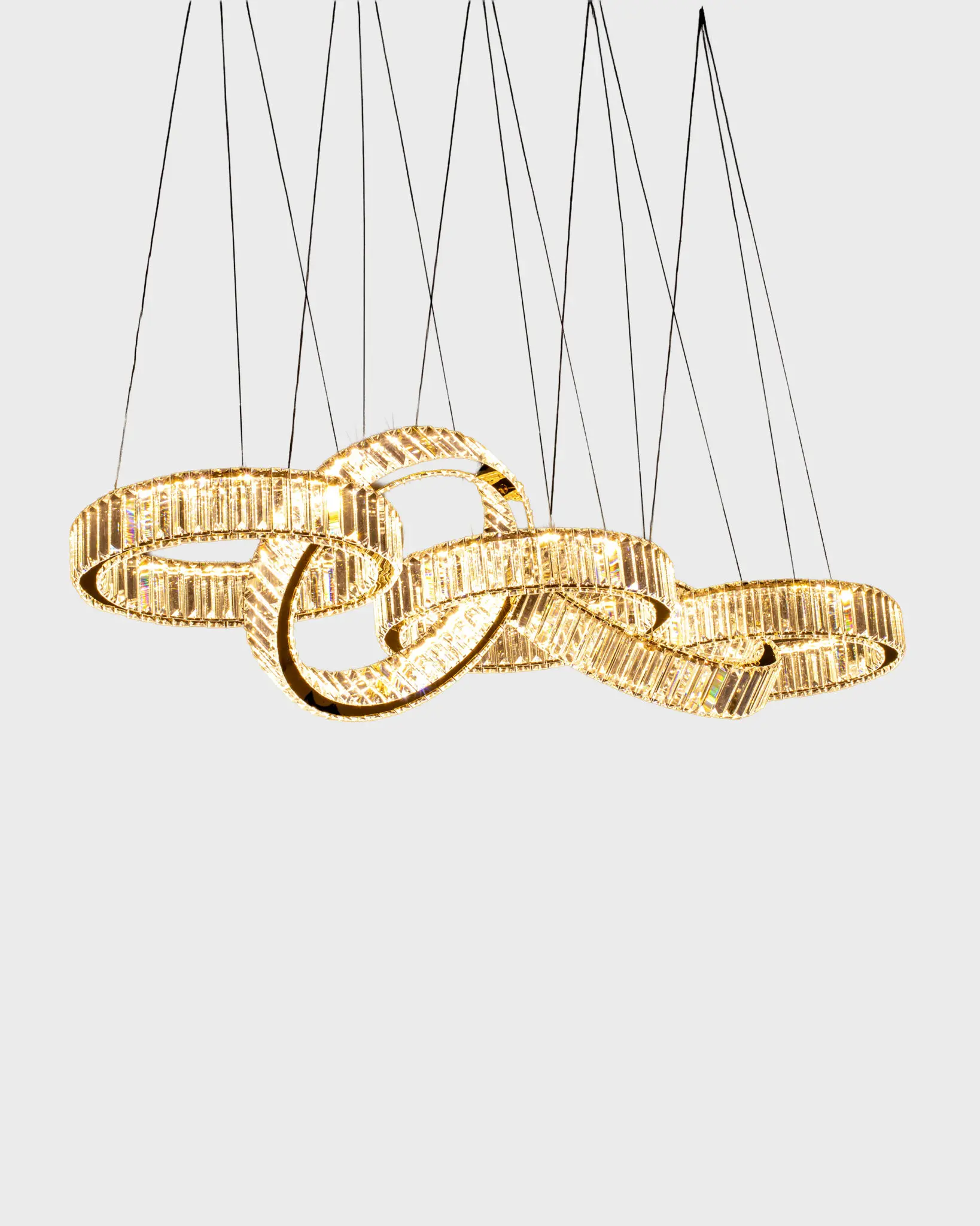 Khung hợp kim mạ vàng: Nâng đỡ khối pha lê là bộ khung hợp kim chắc chắn, được mạ màu Vàng Gold (hoặc Titan) bằng công nghệ PVD tiên tiến. Lớp mạ này không chỉ mang lại vẻ đẹp quyền quý mà còn bảo vệ đèn thả pha lê khỏi các tác nhân oxy hóa, giữ cho đèn luôn sáng bóng bền bỉ theo thời gian.