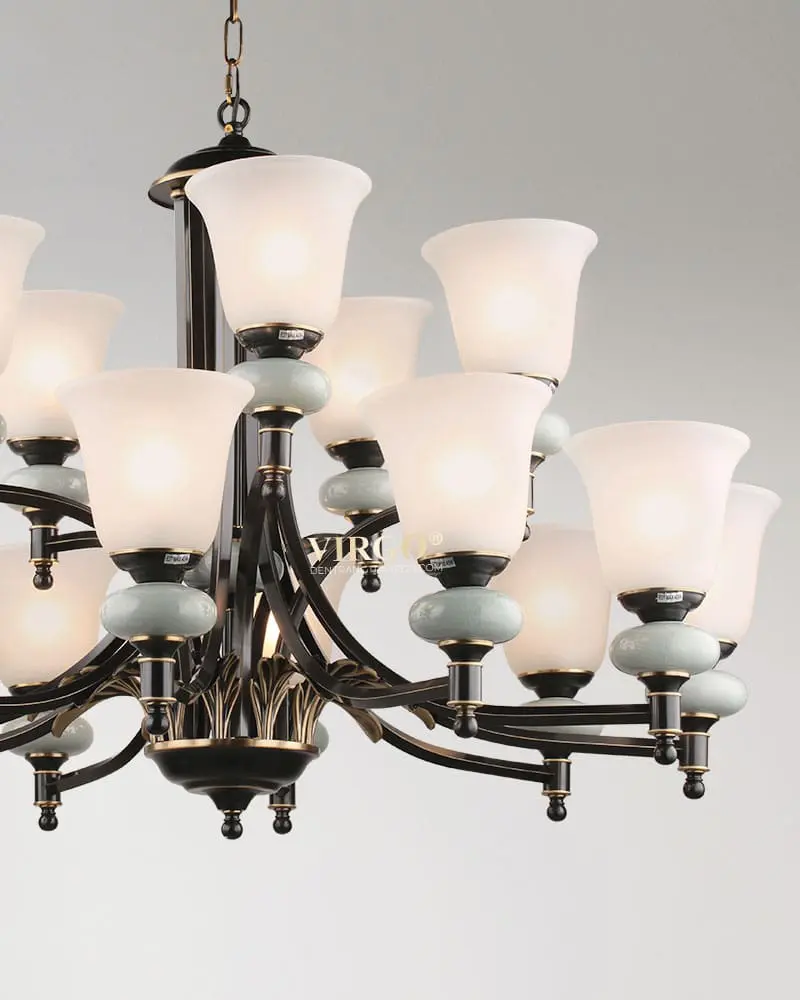 Điểm nhấn tương phản: Một chi tiết đắt giá khiến VRG-TPL810282 trở nên khác biệt so với các mẫu đèn vòng thông thường là các mảng màu đen (đá đen hoặc kim loại đen) được chèn xen kẽ trên vòng đèn. Sự tương phản giữa Vàng – Trắng – Đen tạo nên vẻ đẹp cá tính, mạnh mẽ và cực kỳ thu hút.
