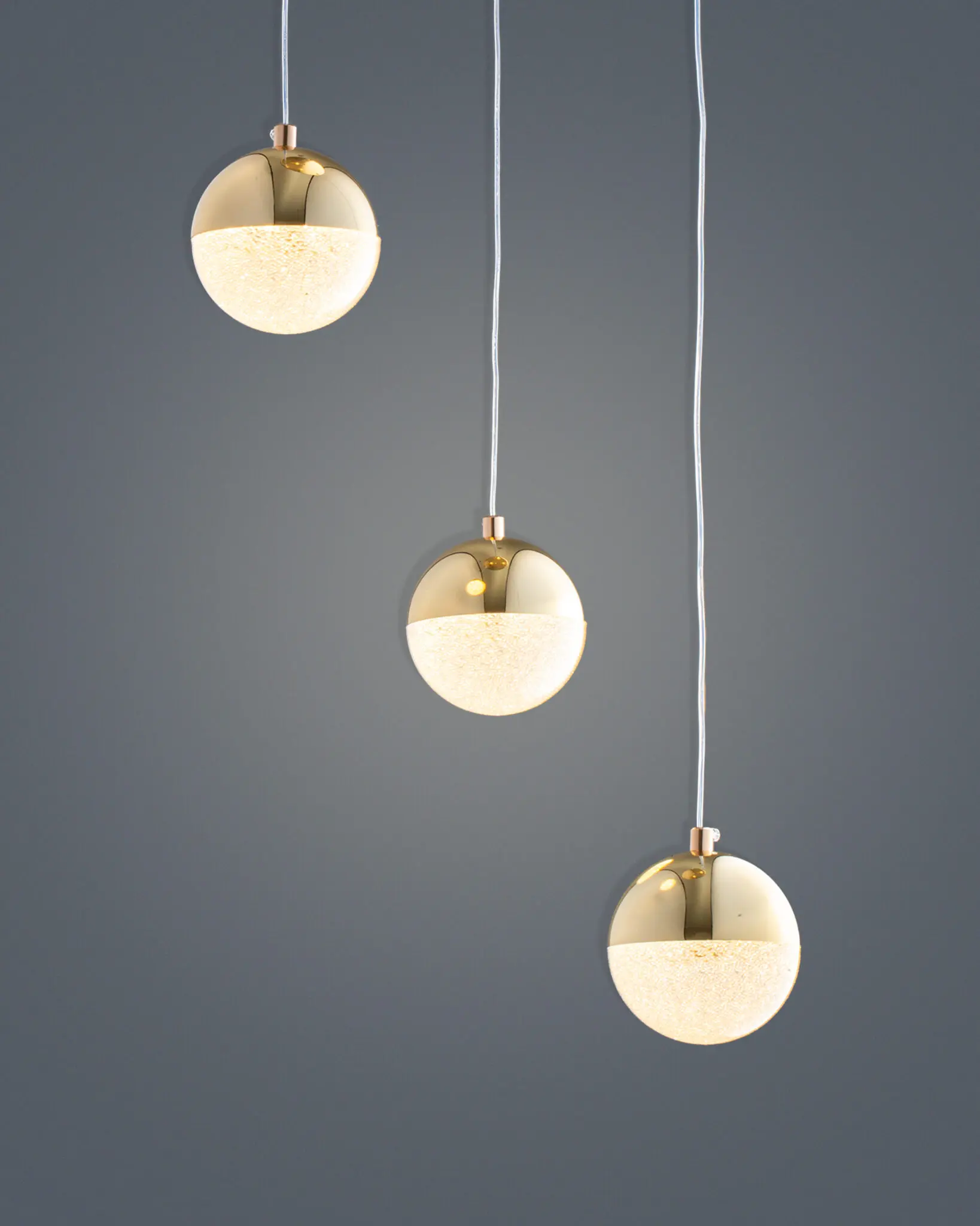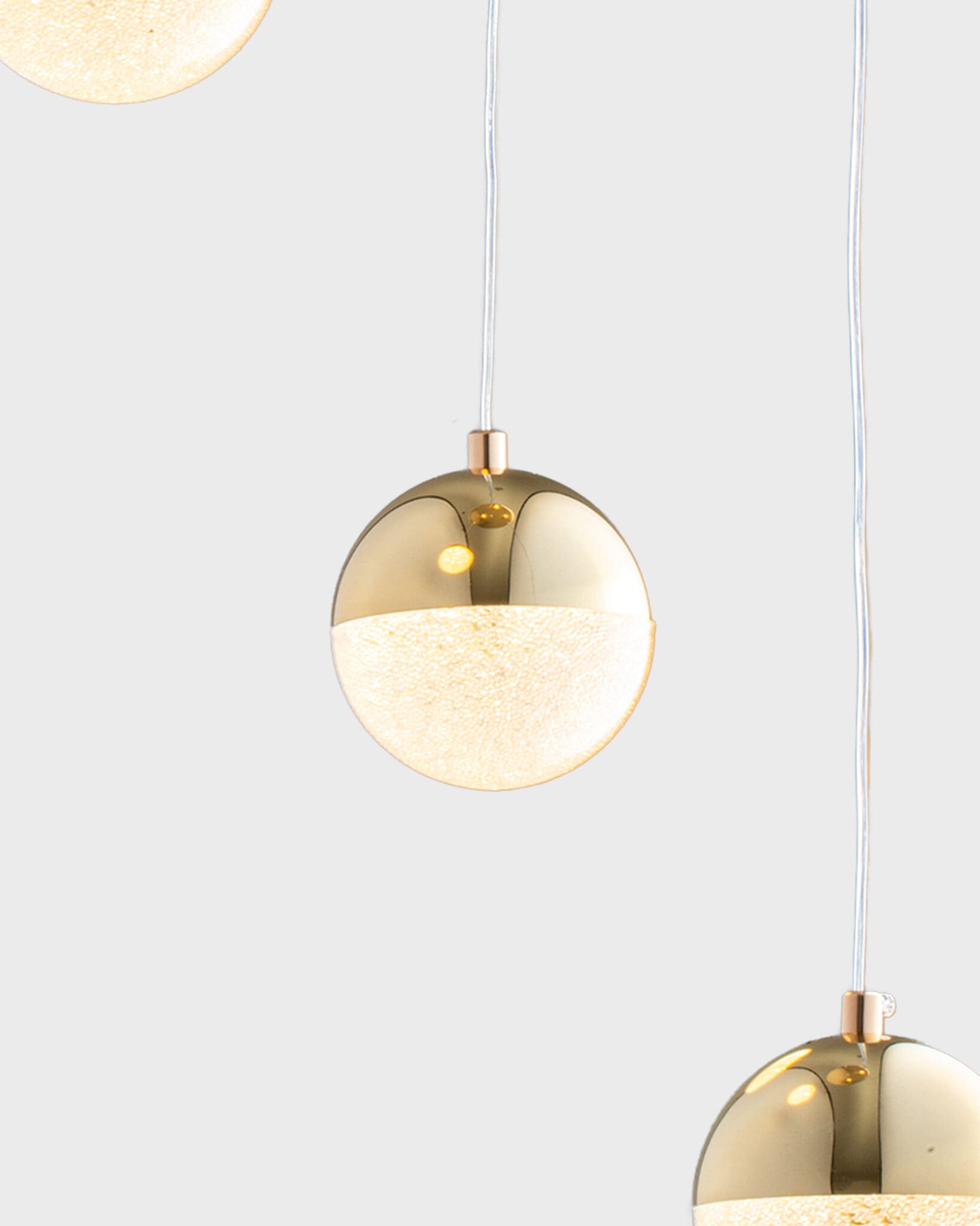 Tựa như những viên ngọc trai vàng kim lơ lửng giữa không trung, VRG-9339S thu hút mọi ánh nhìn bởi vẻ đẹp hoàn mỹ của hình khối và sự lung linh huyền ảo của ánh sáng. Đây không chỉ là một chiếc đèn, nó là một tuyên ngôn về gu thẩm mỹ tinh tế của gia chủ.