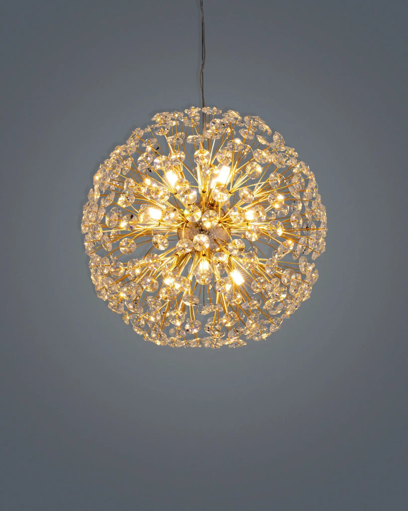 Điểm thu hút đầu tiên của mẫu đèn thả pha lê này chính là cấu trúc hình học độc đáo, thường được giới kiến trúc sư gọi là cấu trúc Sputnik hay Dandelion (Bồ công anh).