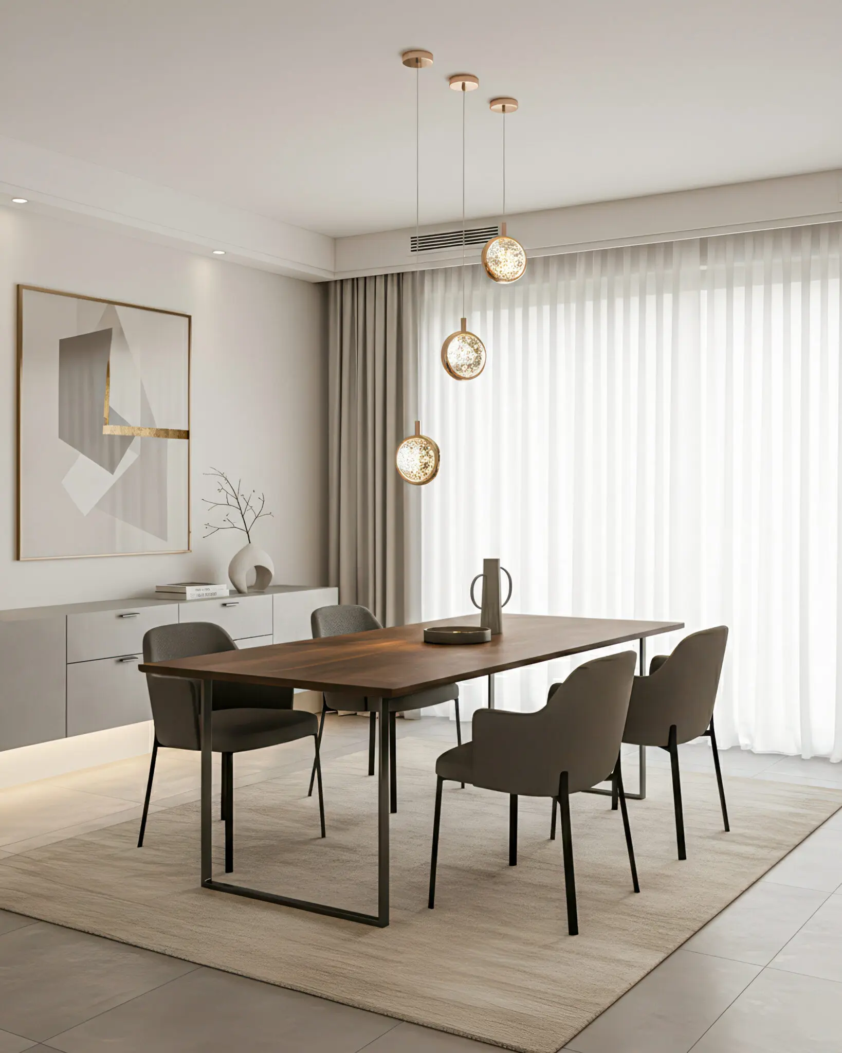 Đây là ứng dụng phổ biến nhất của mẫu đèn này. Thay vì đặt đèn bàn chiếm diện tích tủ đầu giường, bạn hãy treo thả một chiếc (hoặc một cặp so le) VRG-TH8226 từ trần xuống. Ánh sáng dịu nhẹ của pha lê bọt nước cực kỳ thích hợp làm đèn ngủ. Vẻ đẹp lãng mạn của nó sẽ biến phòng ngủ của bạn thành một không gian nghỉ dưỡng 5 sao đích thực.