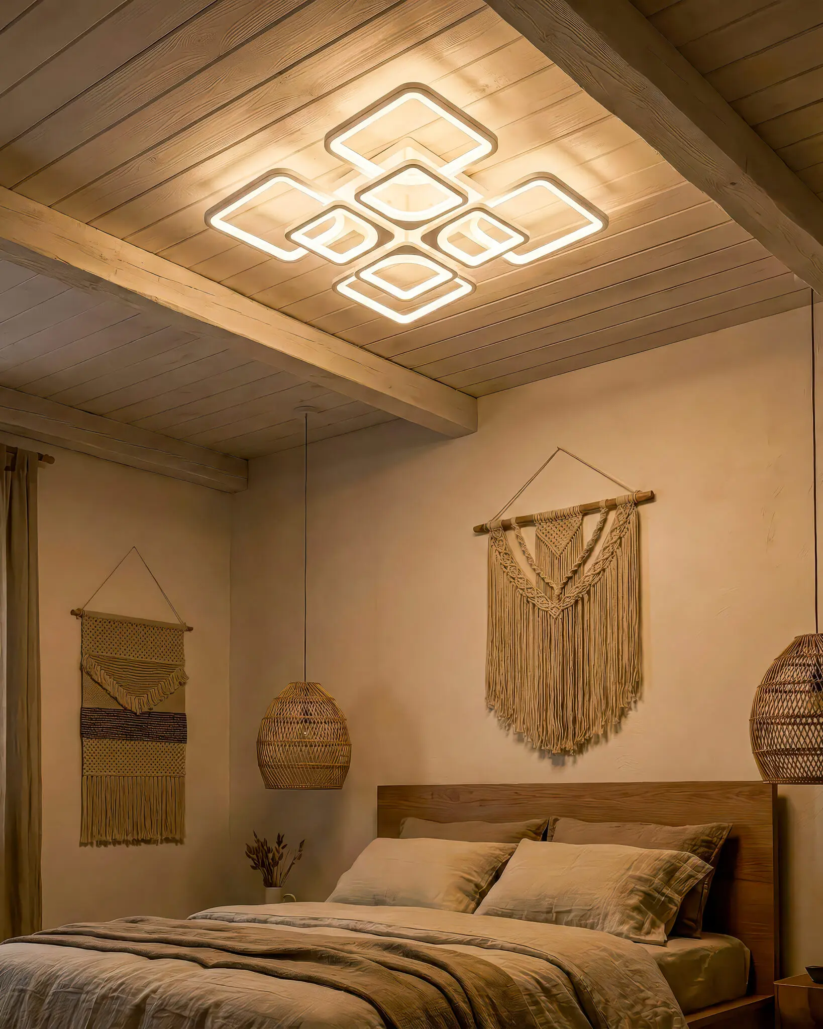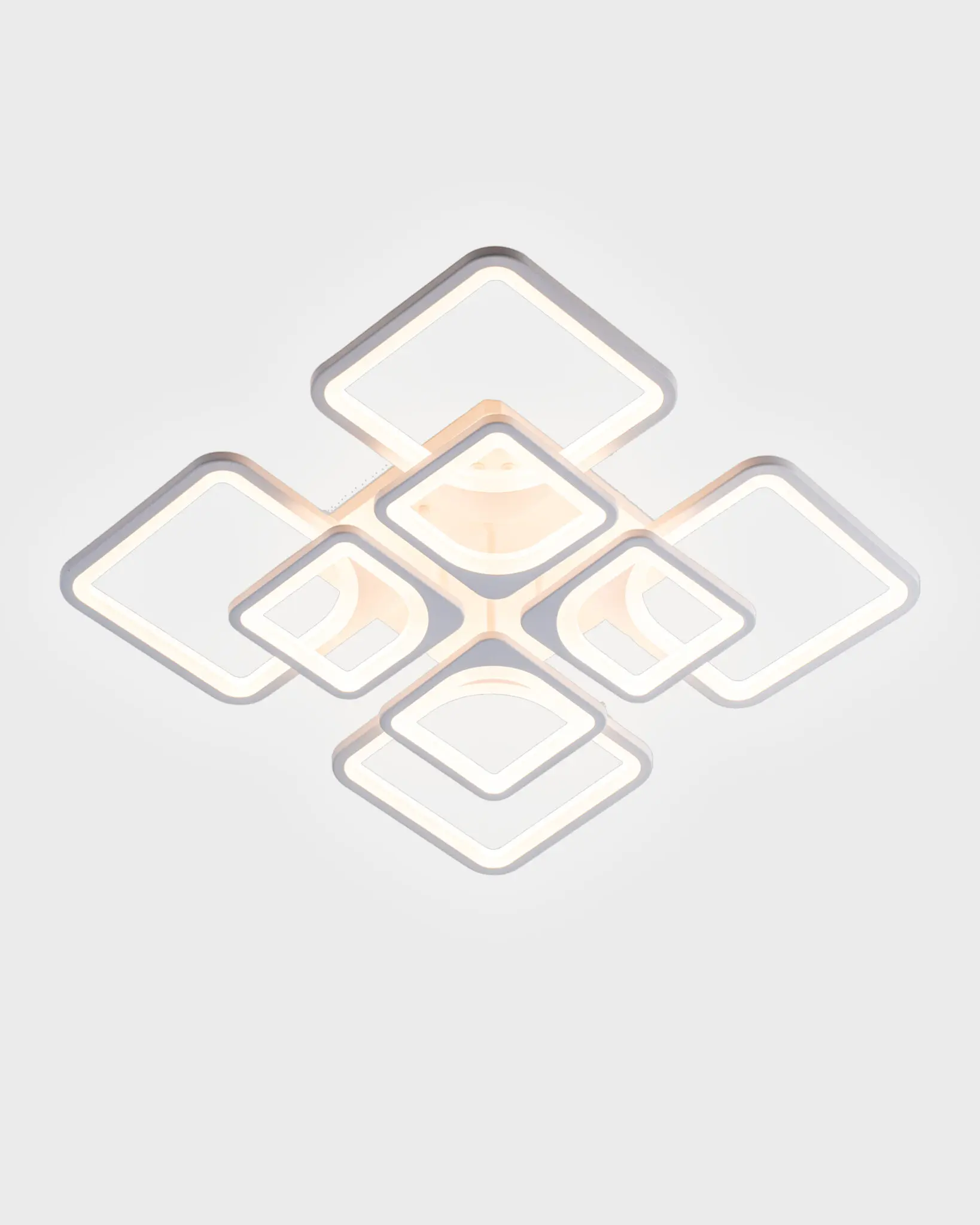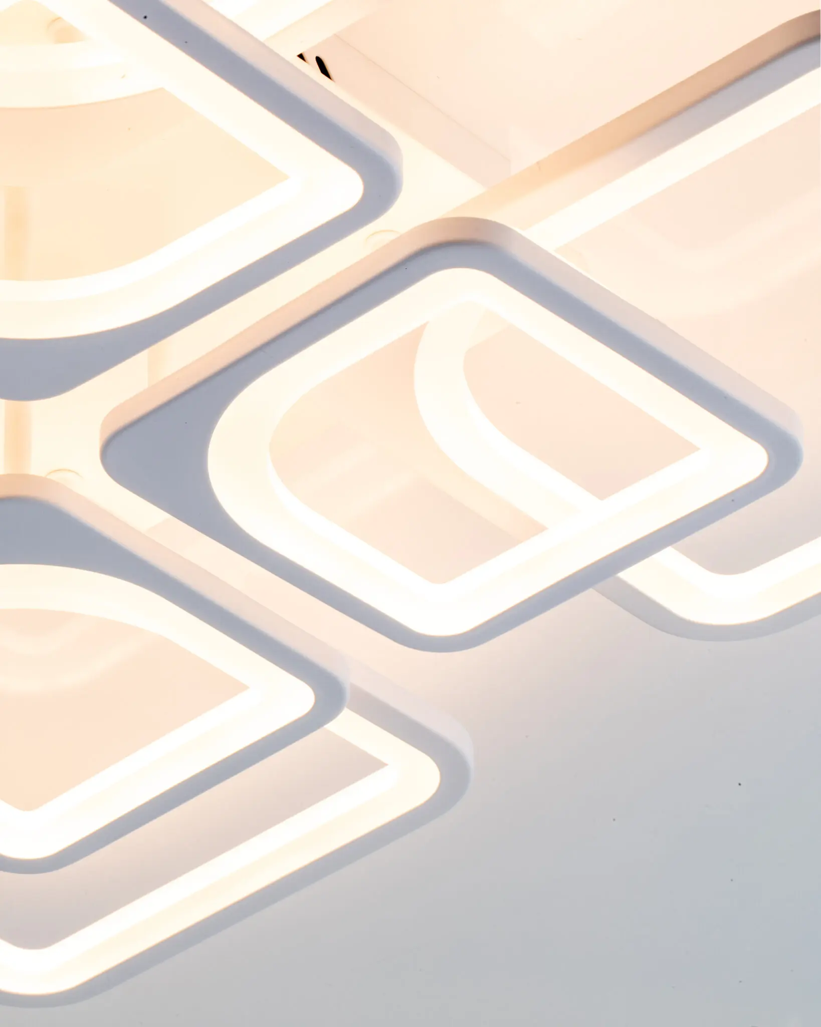 Khác biệt hoàn toàn với những mẫu đèn ốp trần phẳng, một chiều, VRG-MO904 sở hữu một cấu trúc đa tầng lớp đầy mê hoặc. Các nghệ nhân đã khéo léo sắp đặt những khối vuông với kích thước khác nhau, lồng ghép và giao thoa với nhau một cách có chủ đích. Có những khối được đặt ở tầng trên, có những khối lại lùi về phía sau, tạo nên một hiệu ứng chiều sâu 3D vô cùng ấn tượng. Từ mọi góc nhìn, chiếc đèn đều mang một vẻ đẹp khác nhau, lúc thì như một mê cung hình học, lúc lại tựa một đóa hoa công nghệ đang bung nở.
