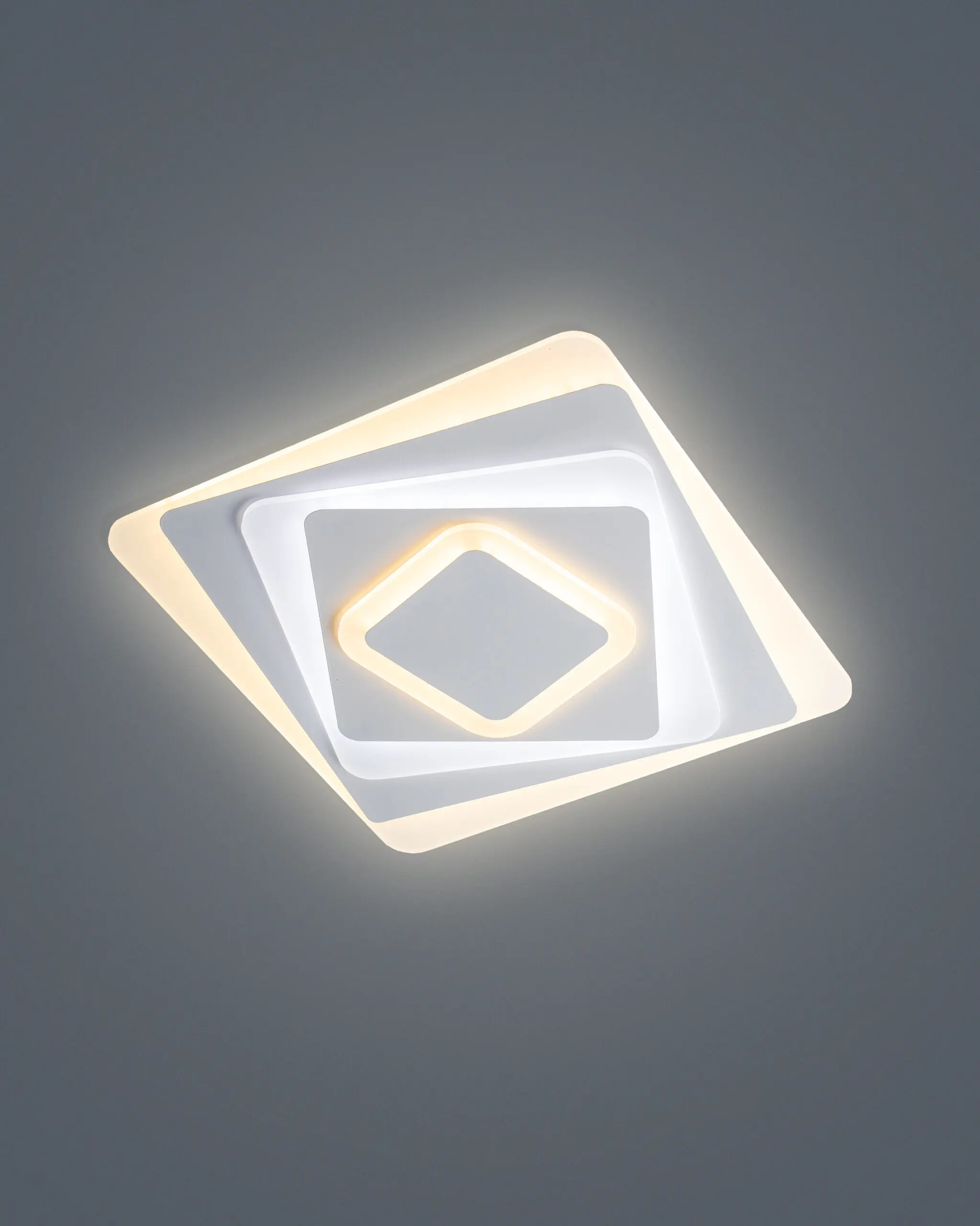 Khác biệt hoàn toàn với các mẫu đèn mâm phẳng truyền thống, VRG-ML8550 được tạo nên từ ba lớp hình khối vuông vức với các góc được bo tròn mềm mại, tinh tế. Các lớp này không nằm đồng phẳng mà được xếp chồng lên nhau và xoay lệch một góc đầy chủ ý. Sự sắp đặt này mang lại những giá trị thẩm mỹ vượt trội: