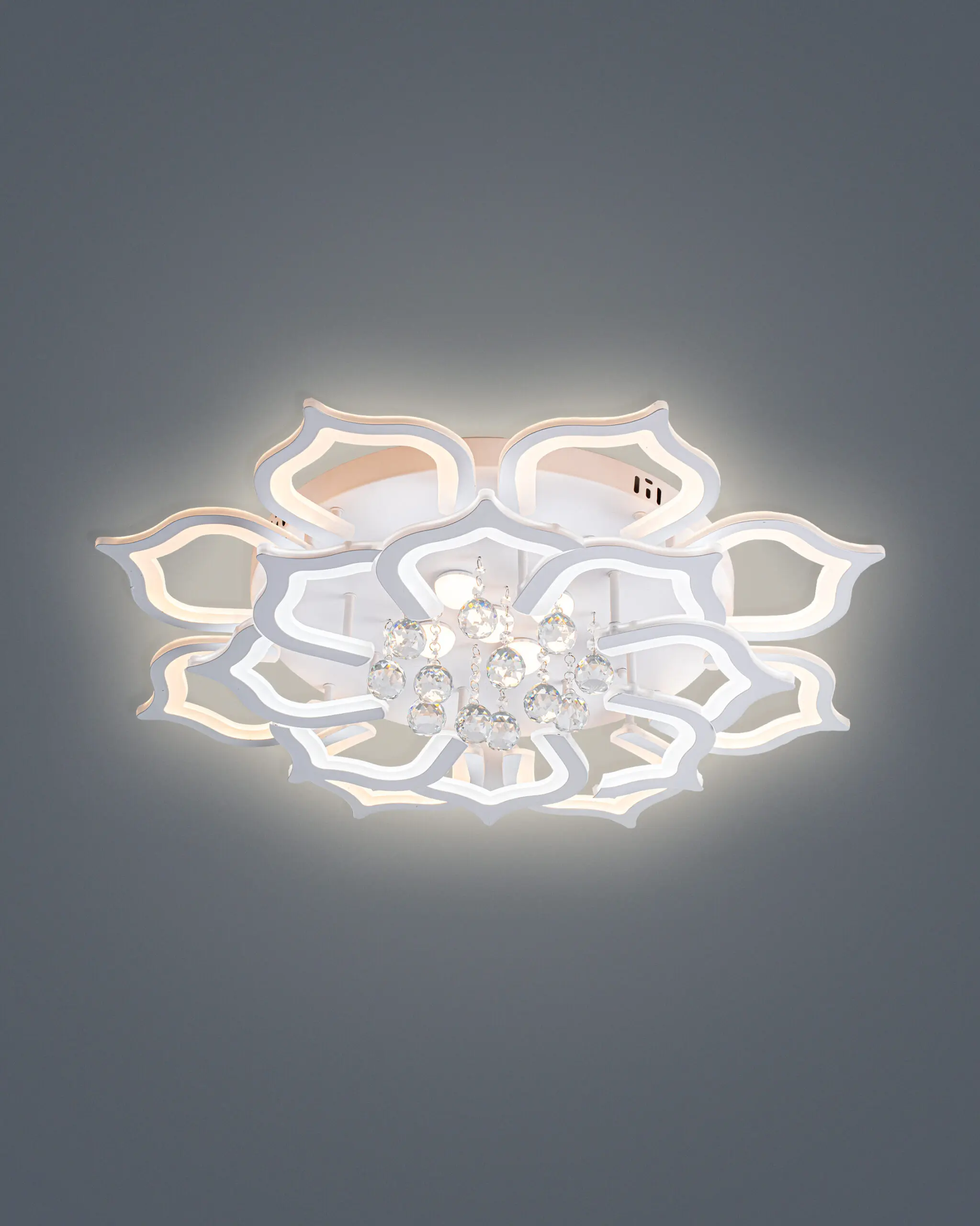 Đèn Ốp Trần Pha Lê Hiện Đại Hình Hoa Sen Trắng LED 3 Chế Độ VRG-MO9001-16