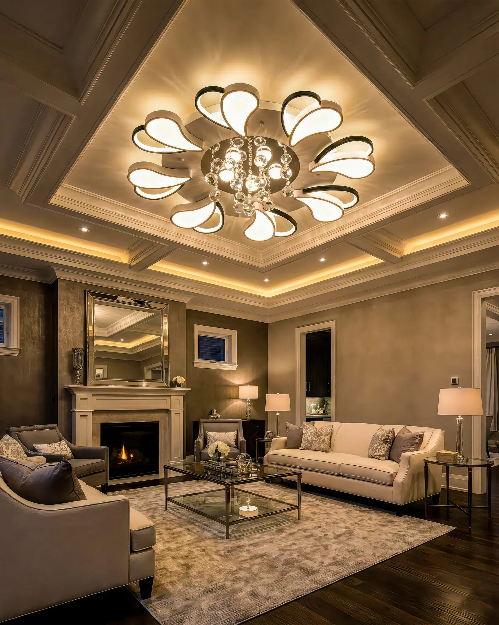 Thiết Kế Độc Bản: Một tác phẩm nghệ thuật trần nhà, khác biệt hoàn toàn so với các mẫu đèn đại trà, khẳng định gu thẩm mỹ tinh tế của gia chủ.