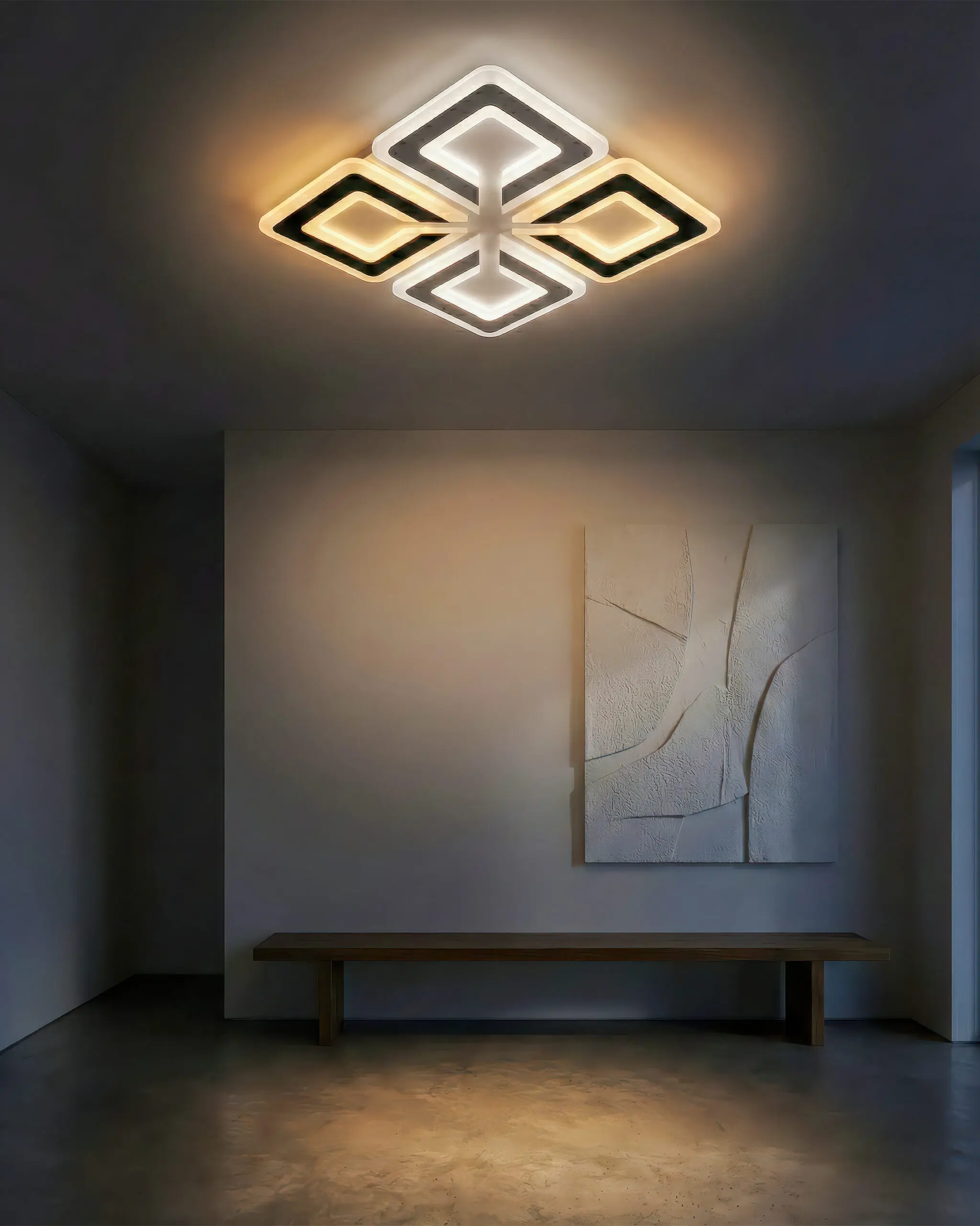 Thiết Kế Độc Bản: Một tác phẩm nghệ thuật hình khối, vượt xa những mẫu đèn ốp trần thông thường, khẳng định gu thẩm mỹ tinh tế của gia chủ.