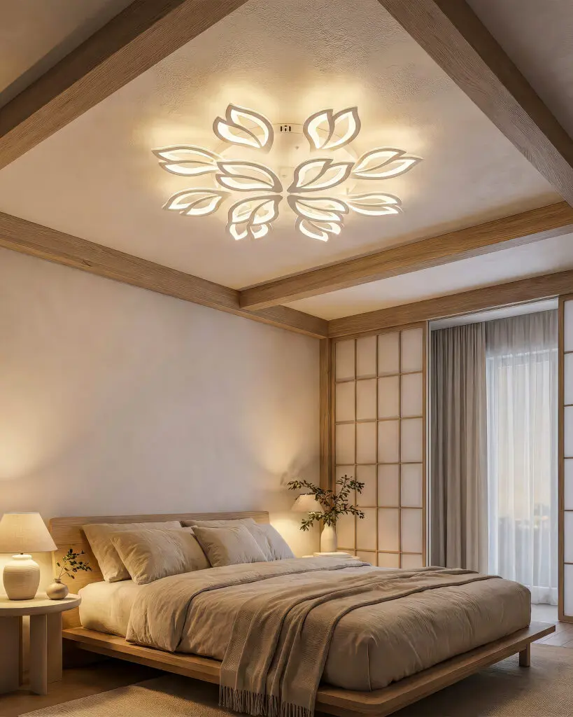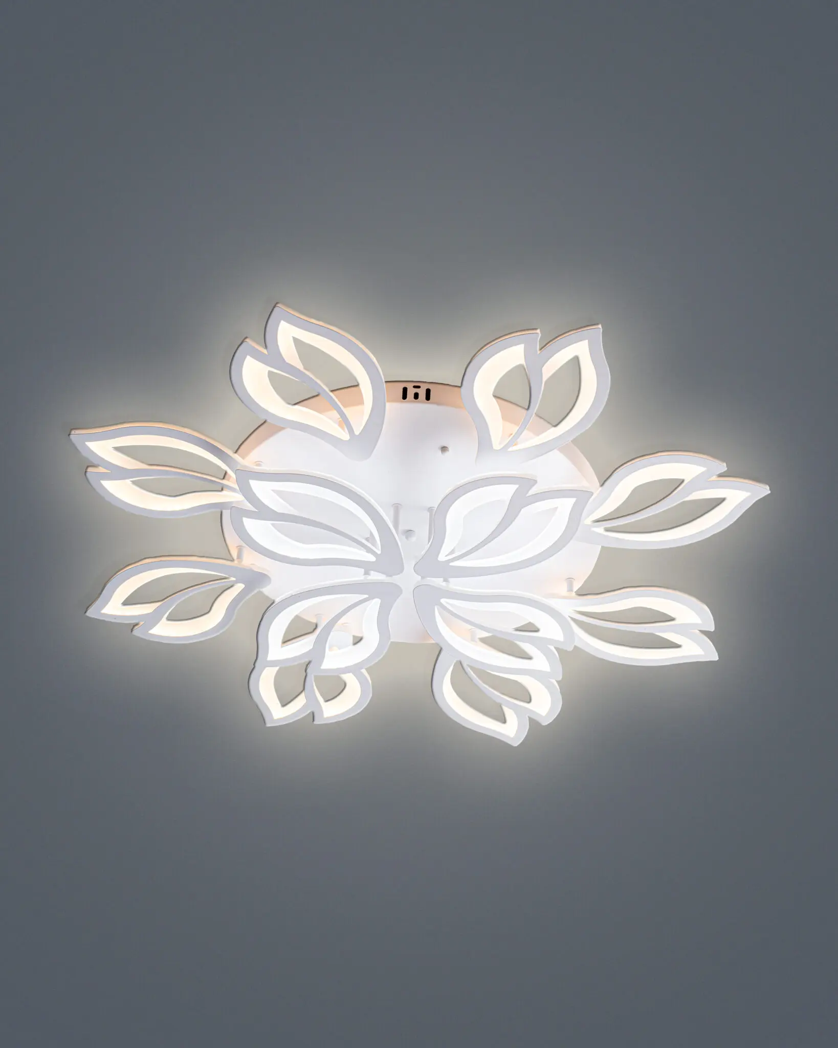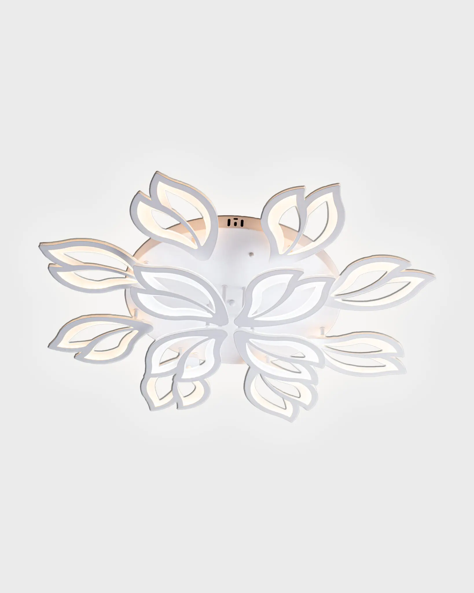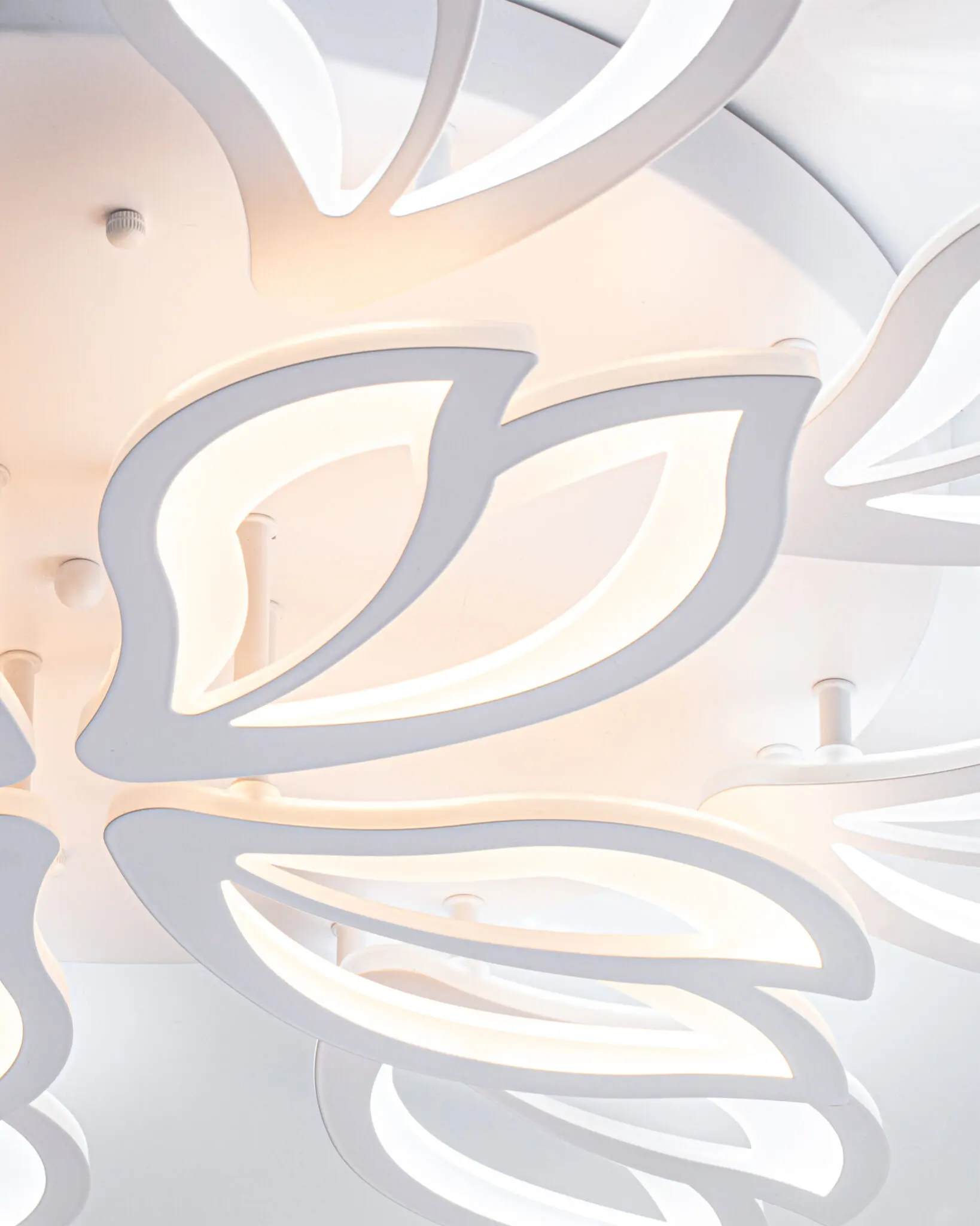 Đường Nét Mềm Mại & Thanh Thoát: Mỗi cánh hoa không phải là một khối đặc, mà là một đường viền uốn lượn mềm mại, bên trong là dải đèn LED được che phủ bởi lớp Acrylic cao cấp. Thiết kế này tạo ra một cảm giác thanh thoát, nhẹ nhàng, như thể những cánh hoa đang rung rinh trong gió. Nó loại bỏ hoàn toàn sự nặng nề của những mẫu đèn ốp trần truyền thống, biến trần nhà thành một bức tranh nghệ thuật bay bổng.