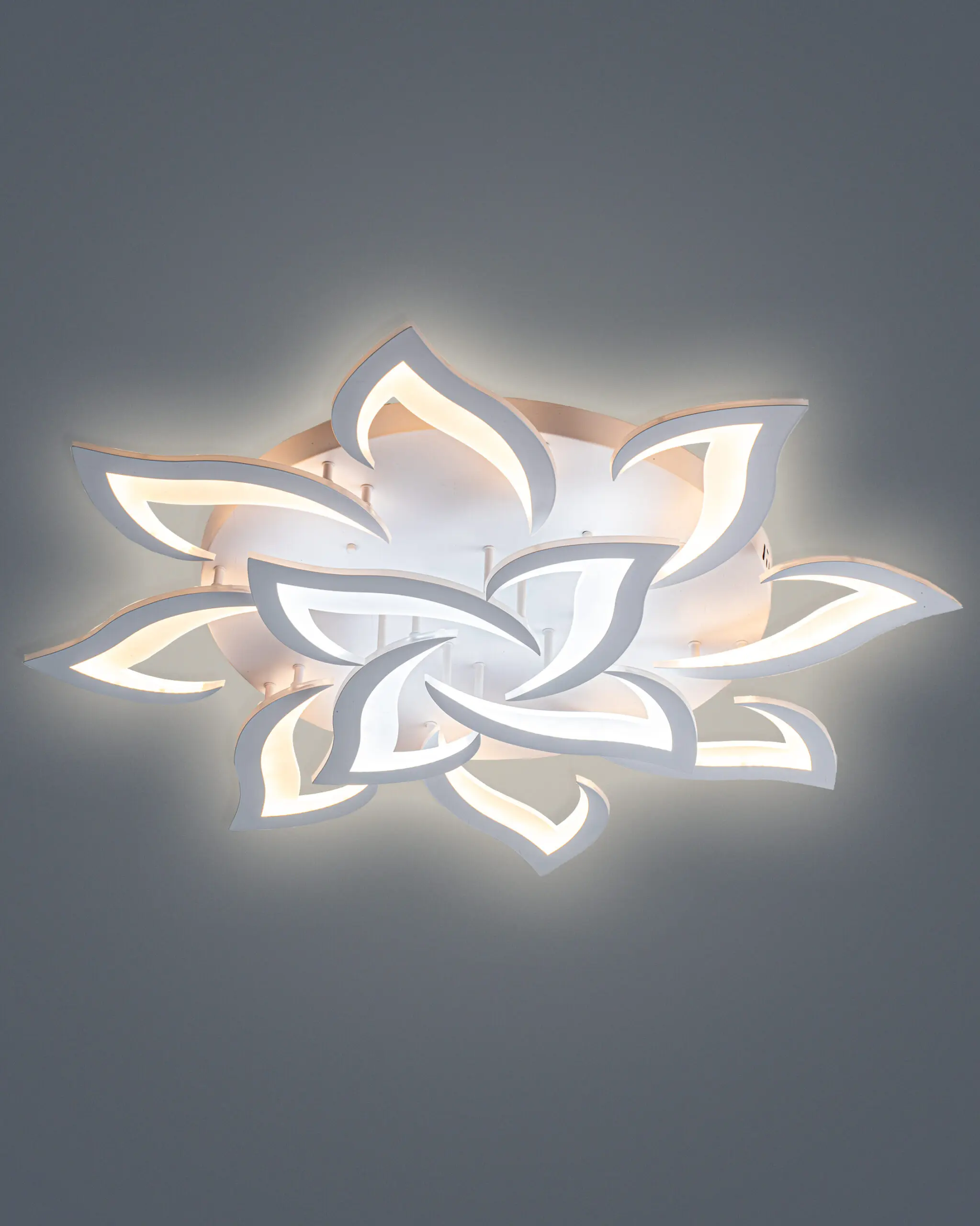Ngay từ cái nhìn đầu tiên, VRG-MT3658-12 đã chinh phục mọi ánh mắt bởi một cấu trúc thị giác đầy ấn tượng và phức hợp. Đây không phải là một chiếc đèn ốp trần thông thường với hình tròn hay hình vuông đơn điệu. Thay vào đó, các nhà thiết kế đã lấy cảm hứng từ hình ảnh một đóa hoa đang ở độ mãn khai, bung tỏa những tầng cánh mềm mại, duyên dáng.