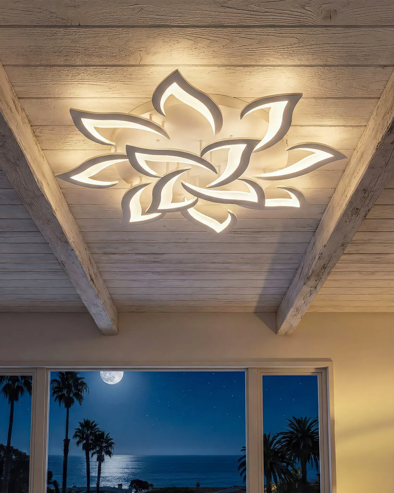 Ánh sáng không chỉ tỏa ra một cách đơn điệu, mà nó len lỏi qua từng kẽ hở giữa các cánh hoa, tạo ra những vùng sáng tối tinh tế trên trần nhà, vẽ nên một bức tranh ánh sáng đầy chiều sâu và cảm xúc. Vào buổi tối, khi VRG-MT3658-12 được bật lên, nó thực sự trở thành một mặt trời nghệ thuật, sưởi ấm và lan tỏa sinh khí cho toàn bộ căn phòng.