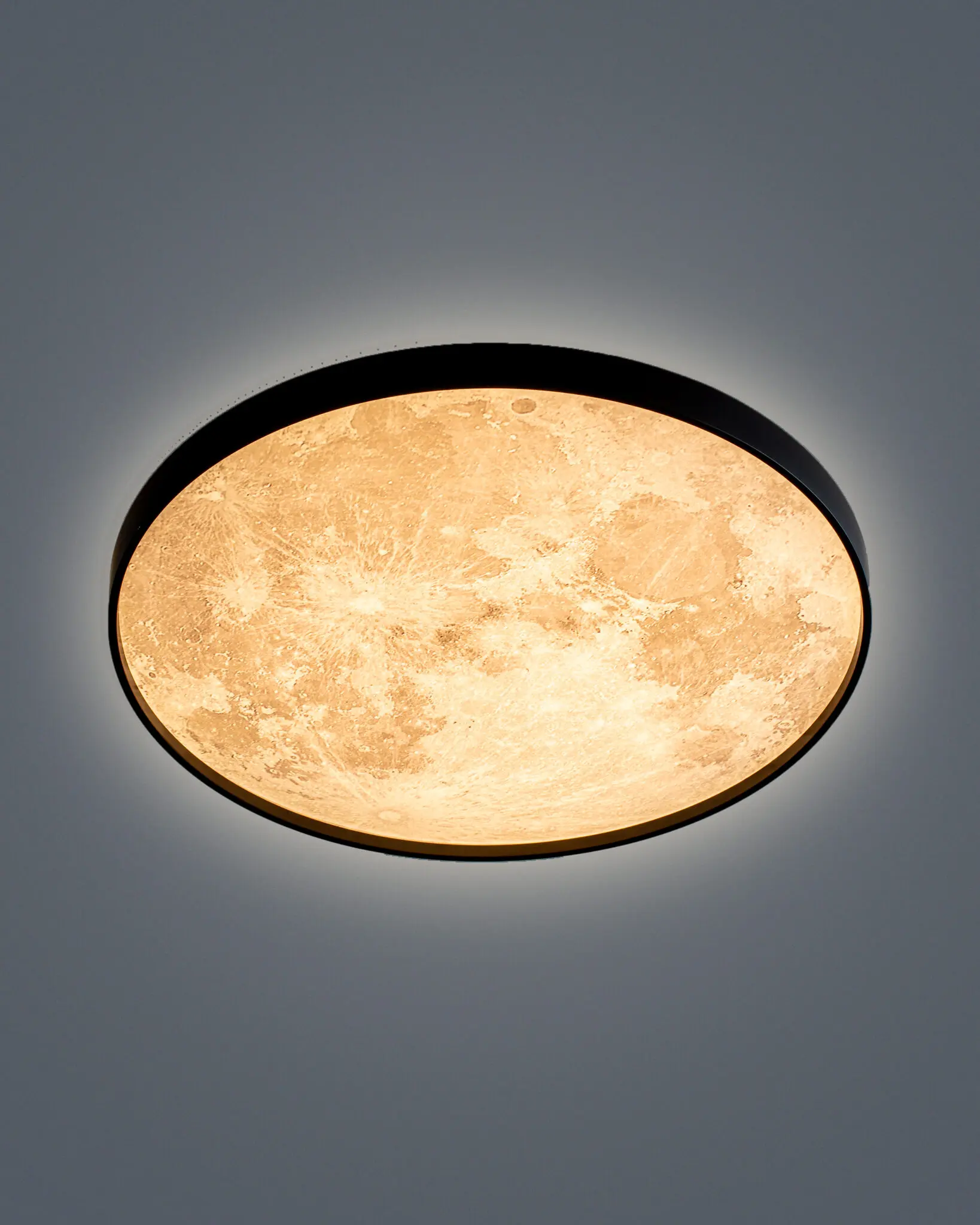 Đèn Ốp Trần Mặt Trăng này chính là bề mặt đèn. Không phải là một tấm ảnh in phẳng thông thường, các nghệ nhân của Virgo đã sử dụng công nghệ in 3D và khắc laser tiên tiến để tái tạo một cách hoàn hảo bề mặt lồi lõm, gồ ghề của vầng trăng thật. Từng chi tiết nhỏ nhất như:
