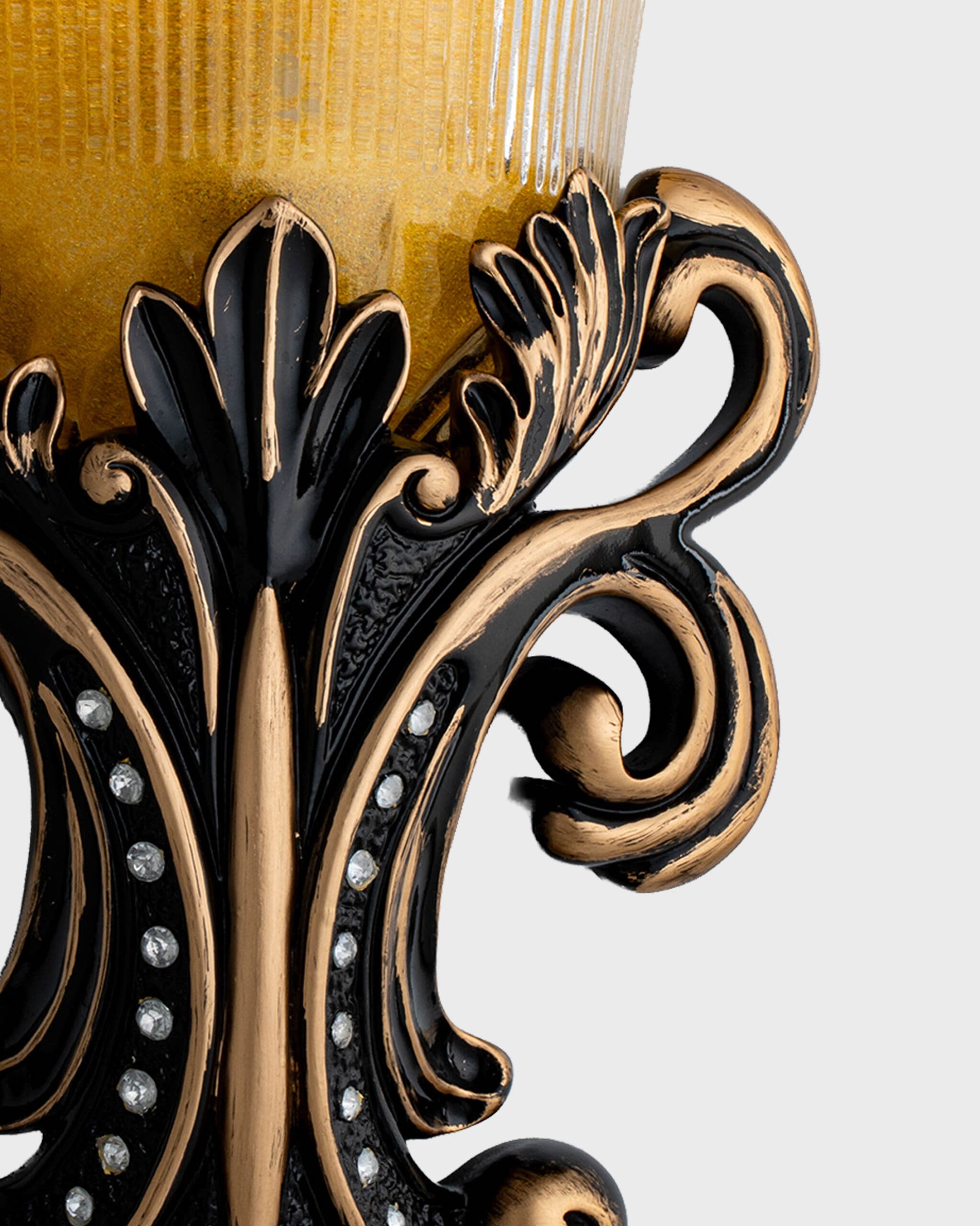 Nếu phần khung đèn là bộ xương vững chắc thì chao đèn chính là linh hồn tạo nên cảm xúc. Chao đèn của VRG-HY352 được chế tác từ thủy tinh cao cấp với tông màu vàng hổ phách đặc trưng.