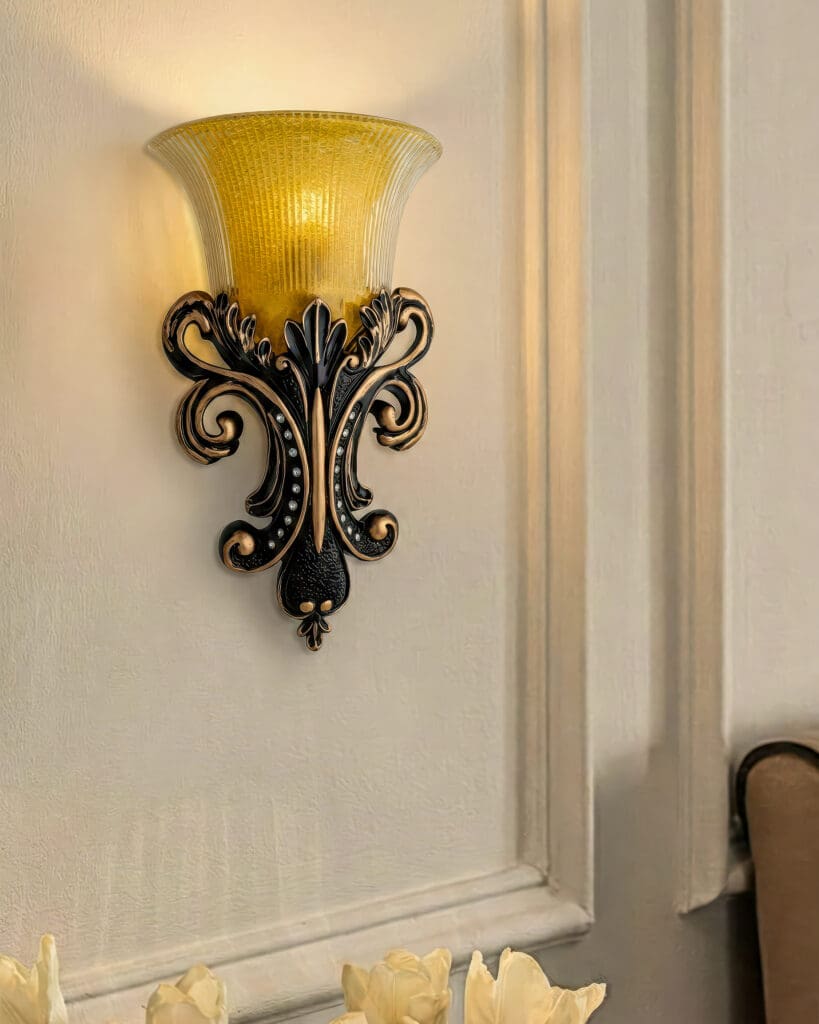 Đèn Tường Cổ Điển VRG-HY352 chính là hiện thân của triết lý ấy. Với thiết kế mang đậm hơi thở quý tộc Châu Âu, sự kết hợp táo bạo giữa sắc đen huyền bí, ánh vàng vương giả và chao đèn thủy tinh màu hổ phách, sản phẩm này hứa hẹn sẽ là điểm nhấn đắt giá, nâng tầm đẳng cấp cho mọi công trình kiến trúc từ biệt thự tân cổ điển đến những căn hộ hạng sang.