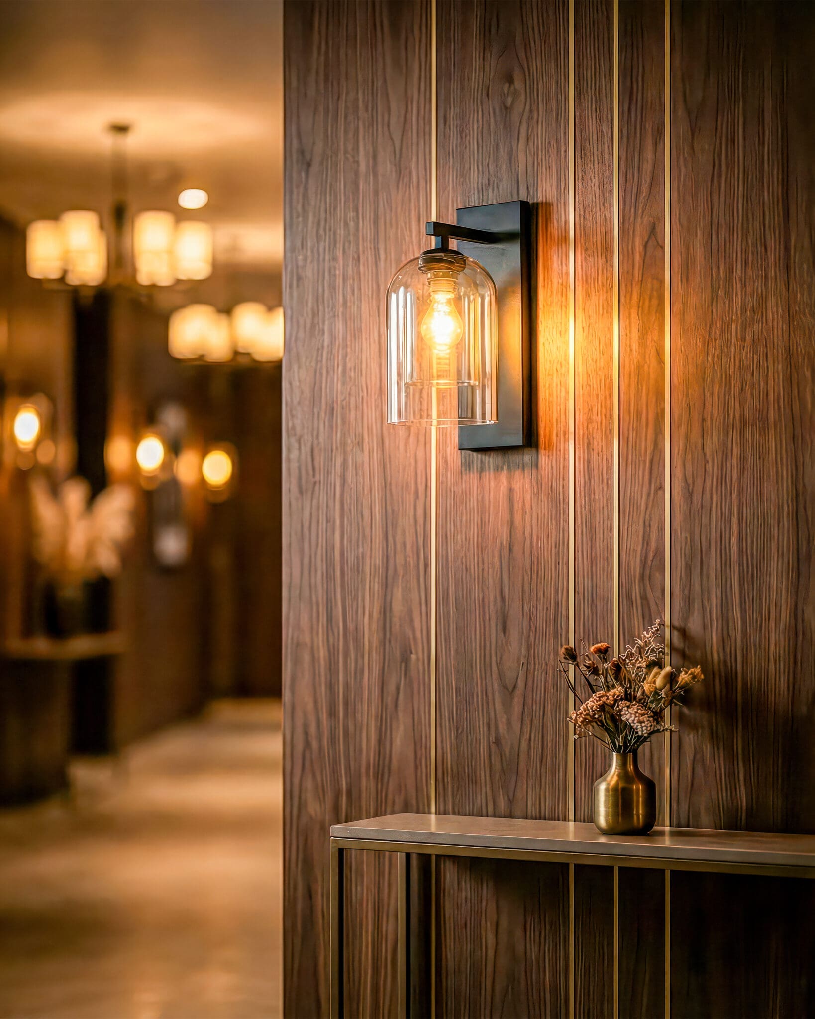 Trong không gian phòng khách, mẫu đèn này là lựa chọn tuyệt vời để gắn hai bên tivi, phía trên ghế sofa hoặc dọc theo các cột tường. Ánh sáng vàng ấm từ đèn sẽ cân bằng lại sự lạnh lẽo của các thiết bị điện tử hay tường đá, tạo nên sự hiếu khách và ấm cúng. Tại sảnh đón hoặc hành lang, chuỗi đèn VRG-GT302023 lắp đặt thẳng hàng sẽ tạo nên một “đường dẫn ánh sáng” đầy nghệ thuật, dẫn lối gia chủ bước vào không gian nghỉ ngơi.
