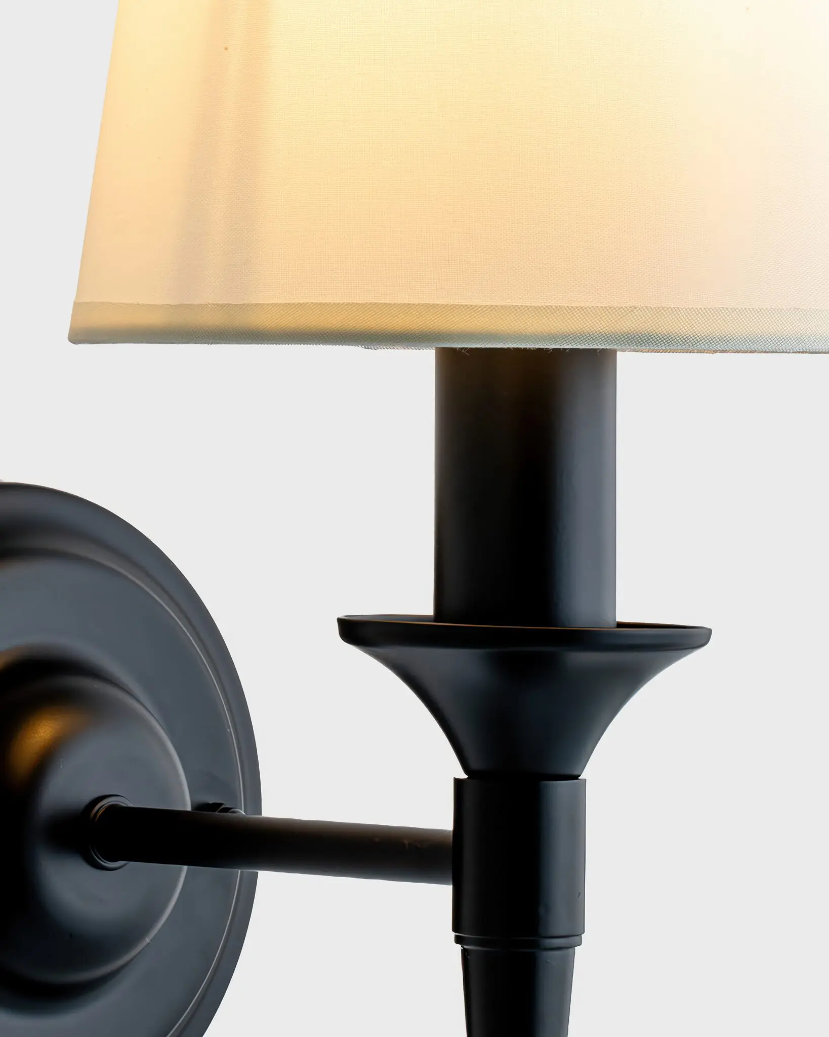 Khi nhìn vào chiếc đèn tường chụp vải này, bạn sẽ ngay lập tức bị cuốn hút bởi thiết kế cổ điển, mang vẻ đẹp giản dị mà thanh lịch. Hình dáng tròn của chao đèn kết hòa cùng phần thân đèn làm từ hợp kim đen tạo nên không gian ấm áp và sang trọng. Đặc biệt, thiết kế này không chỉ đơn thuần là một chiếc đèn, mà là một điểm nhấn thể hiện sự tinh tế, khác biệt hoàn toàn so với những chiếc đèn truyền thống đơn điệu. Sự cân đối trong tỷ lệ, cộng với những chi tiết được tính toán kỹ lưỡng, cho thấy sự khéo léo trong nghệ thuật thiết kế. Đi sâu vào từng chi tiết, chiếc chao vải mềm mại đem đến cảm giác nhẹ nhàng, trong khi phần khung hợp kim với độ dày chuẩn giúp tăng cường tính bền vững và thời trang. Những đường cong nhẹ nhàng, cùng với các điểm nhấn như đai viền và chốt kết nối, tạo nên sự trang nhã đầy cuốn hút. Các lớp vật liệu được sắp xếp một cách tỉ mỉ, khiến chiếc đèn trở thành một tác phẩm nghệ thuật mà bạn không thể không chú ý.