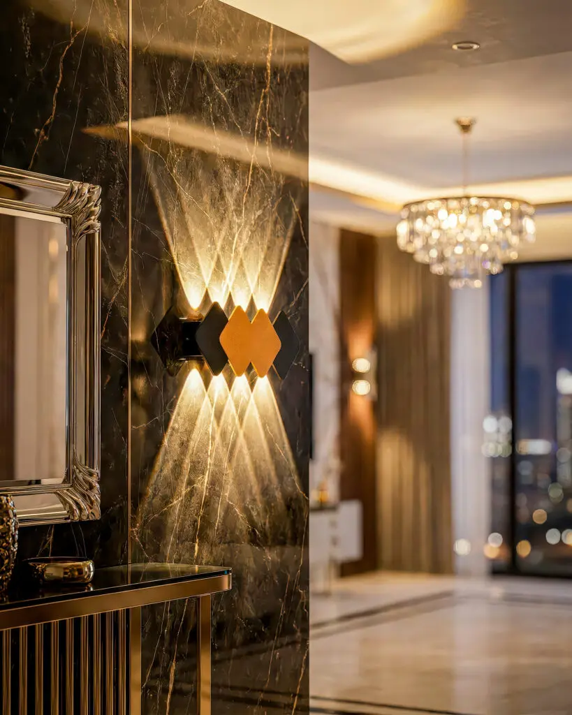 Thiết kế của Đèn Tường Hiện Đại VRG-VL928-8 khiến người xem không thể rời mắt ngay từ cái nhìn đầu tiên. Khung đèn với hình dáng cách điệu, được tạo nên từ hợp kim cao cấp, tạo ấn tượng mạnh mẽ và hiện đại. Chiếc đèn không chỉ đơn thuần là một vật dụng chiếu sáng mà còn là một tác phẩm nghệ thuật làm điểm nhấn cho bức tường. Khác biệt hoàn toàn với những sản phẩm truyền thống, Đèn VRG-VL928-8 mang đến sự mới mẻ, sáng tạo và đầy tính thẩm mỹ. Hãy cùng khám phá các chi tiết trong thiết kế của đèn. Đèn có các mảnh ghép hình học được sắp xếp tinh tế, tôn vinh vẻ đẹp của sự đối xứng. Những góc cạnh sắc nét và đường cong mềm mại kết hợp hài hòa, tạo nên một sản phẩm vừa chắc chắn, vừa thanh thoát. Đường nét mềm mại kết hợp với sắc công nghiệp của hợp kim là ấn tượng chính trong mắt người chiêm ngưỡng.