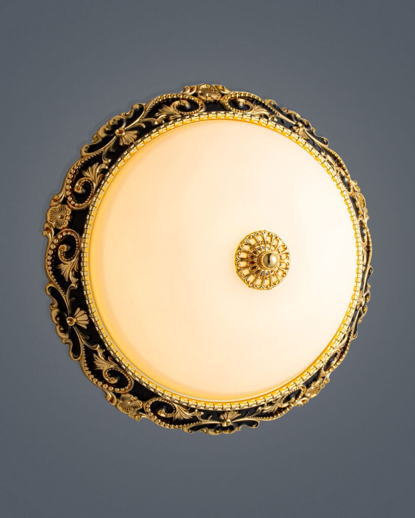 Đèn Ốp Trần Cổ Điển VRG-OD71822 có một thiết kế độc đáo, kết hợp giữa sự sang trọng và sự tinh tế trong từng chi tiết. Hình dáng được chế tác với những đường nét uốn lượn mềm mại, cùng với hoa văn cổ điển mang lại ấn tượng mạnh ngay từ cái nhìn đầu tiên khi ngước nhìn lên. So với các mẫu đèn ốp trần thông thường, sản phẩm này có sự khác biệt rõ rệt về phong cách thiết kế, với tỷ lệ vàng được ứng dụng một cách tinh tế, tạo ra một tổng thể hài hòa và dễ chịu. Những chi tiết góc cạnh được bo tròn, giúp cho sản phẩm này không chỉ mang lại ánh sáng mà còn làm đẹp cho không gian trần ngay cả khi chưa bật sáng. Các bộ phận của chiếc đèn được kết nối một cách chắc chắn, với khung đèn dày dạn và vững chắc. Những họa tiết trang trí được khắc họa tỉ mỉ, tạo nên những bóng đổ đẹp mắt lan tỏa xuống không gian khi ánh sáng chiếu qua. Đường cong mềm mại hòa quyện cùng góc cạnh sắc nét, mỗi chi tiết đều được chăm chút để tạo nên vẻ đẹp hoàn mỹ cho sản phẩm. Kích thước bề thế của đèn cũng giúp tối đa hóa hiệu ứng trang trí, góp phần làm sáng bừng cả căn phòng từ trên cao.