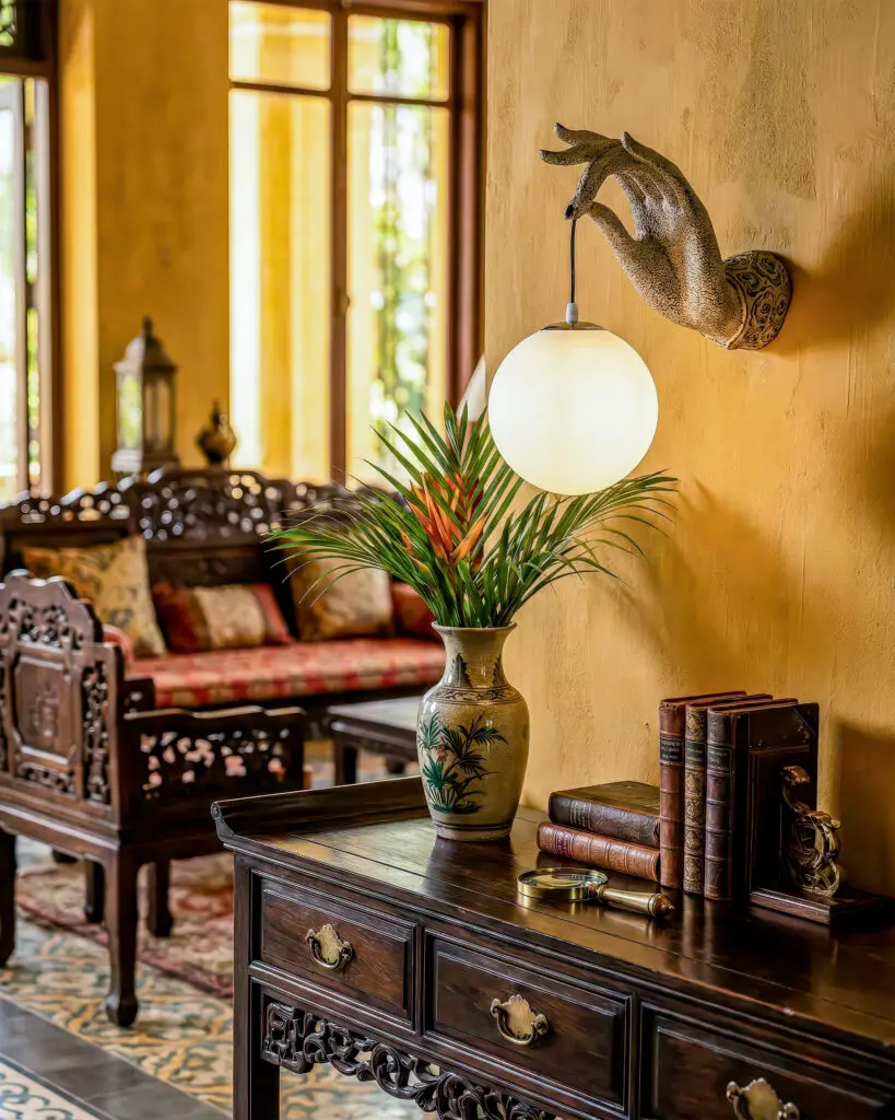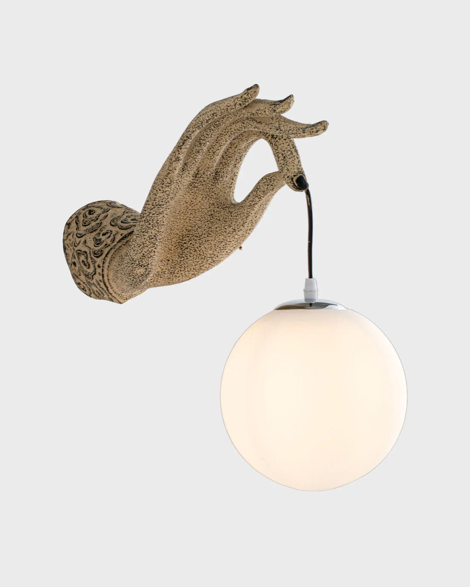 Sự kỳ diệu trong thiết kế của Đèn Tường Hình Tay Độc Đáo được thể hiện qua hình dáng của khung tay. Khung đèn được mô phỏng từ bàn tay, tạo nên cảm giác như một tác phẩm điêu khắc đang chạm tới nguồn sáng. Sự mềm mại của đường cong đôi bàn tay kết hợp với hình tròn của chao đèn tạo nên một sự hài hòa hoàn hảo, khiến cho thiết kế trở nên bắt mắt và hấp dẫn hơn. Sự độc đáo này khác hoàn toàn so với những mẫu đèn truyền thống, thể hiện sự sáng tạo và mới mẻ trong phong cách thiết kế hiện đại. Đi sâu vào chi tiết, chúng ta thấy rằng các bộ phận của đèn được kết nối một cách tinh tế. Độ dày và kết cấu của khung tay không chỉ tạo nên tính thẩm mỹ mà còn đảm bảo độ bền. Các họa tiết trang trí trên khung tay được hoàn thiện tỉ mỉ, từ việc chạm khắc tinh xảo đến việc sơn màu hoàn hảo, giúp phản chiếu ánh sáng một cách ấn tượng. Đường nét của chiếc đèn mang đến cảm giác sang trọng và quý phái, phù hợp với nhiều phong cách nội thất khác nhau.