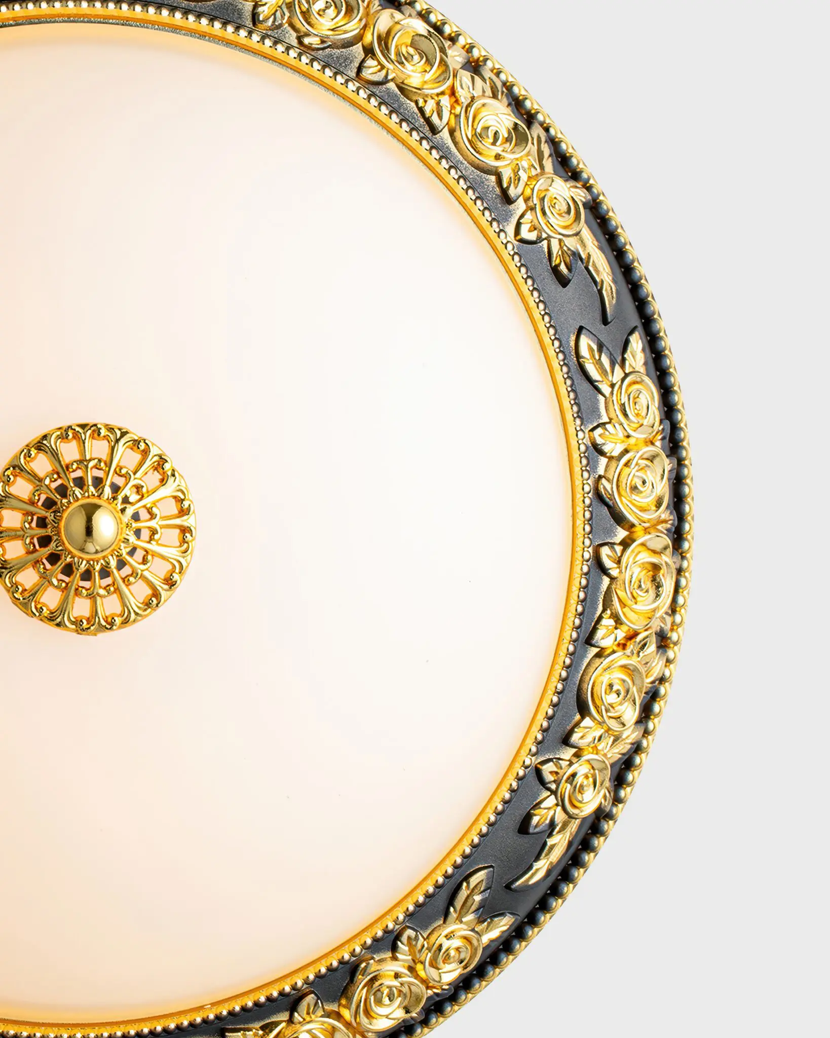 - Phân khúc cao cấp với thiết kế nổi bật, Đèn Ốp Trần Cổ Điển VRG-EUBT91 đem lại sự khác biệt vượt trội so với các sản phẩm đèn ốp trần led tròn đơn điệu nhờ vào chi tiết chạm khắc tinh tế và chất liệu mạ vàng thượng hạng.