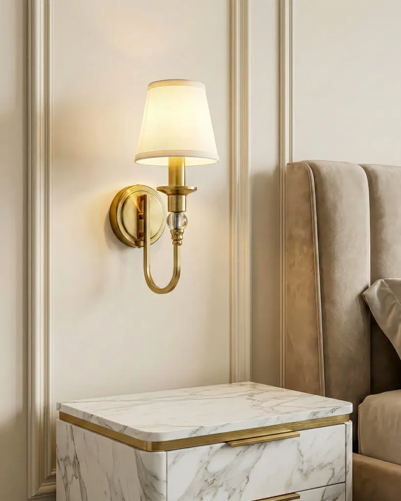 Ngoại hình tổng thể của Đèn Tường Đồng Cổ Điển này gây ấn tượng mạnh mẽ ngay từ cái nhìn đầu tiên với các đường nét mềm mại, thanh thoát và tinh tế. Khung đèn được thiết kế tỉ mỉ với từng chi tiết, tạo ra sự hài hòa tuyệt đối giữa chức năng chiếu sáng và thẩm mỹ. So sánh với các thiết kế đèn truyền thống, sản phẩm này sở hữu một phong cách hiện đại, giản dị nhưng không kém phần lộng lẫy, xứng đáng là điểm nhấn cho bất kỳ không gian nào. Đặc biệt, tính năng thiết kế mang đến cho sản phẩm này sự cân đối hoàn hảo, từ kích thước đến tỷ lệ giữa các bộ phận. Khung của đèn không chỉ chắc chắn mà còn tạo ra một cảm giác nhẹ nhàng, thanh thoát khi treo trên tường. Chi tiết viền vàng sang trọng và lớp chao đèn mềm mại mang lại độ ấm cần thiết cho mọi không gian, khiến cho nó trở thành lựa chọn lý tưởng cho cả phong cách cổ điển lẫn hiện đại.