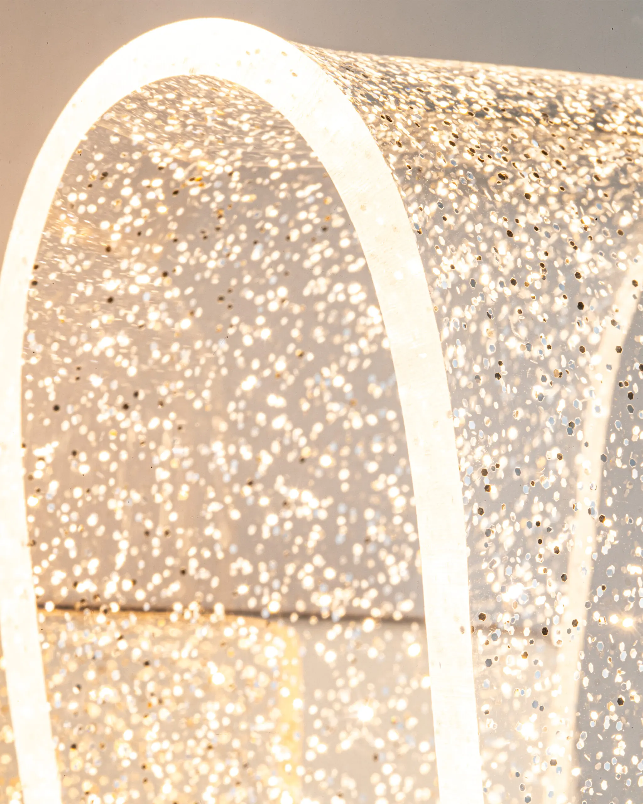 - Các điểm nhấn trang trí của đèn, từ chao cho tới thân đèn, đều thể hiện sự tinh tế với những họa tiết lấp lánh, làm nổi bật phong cách hiện đại.
