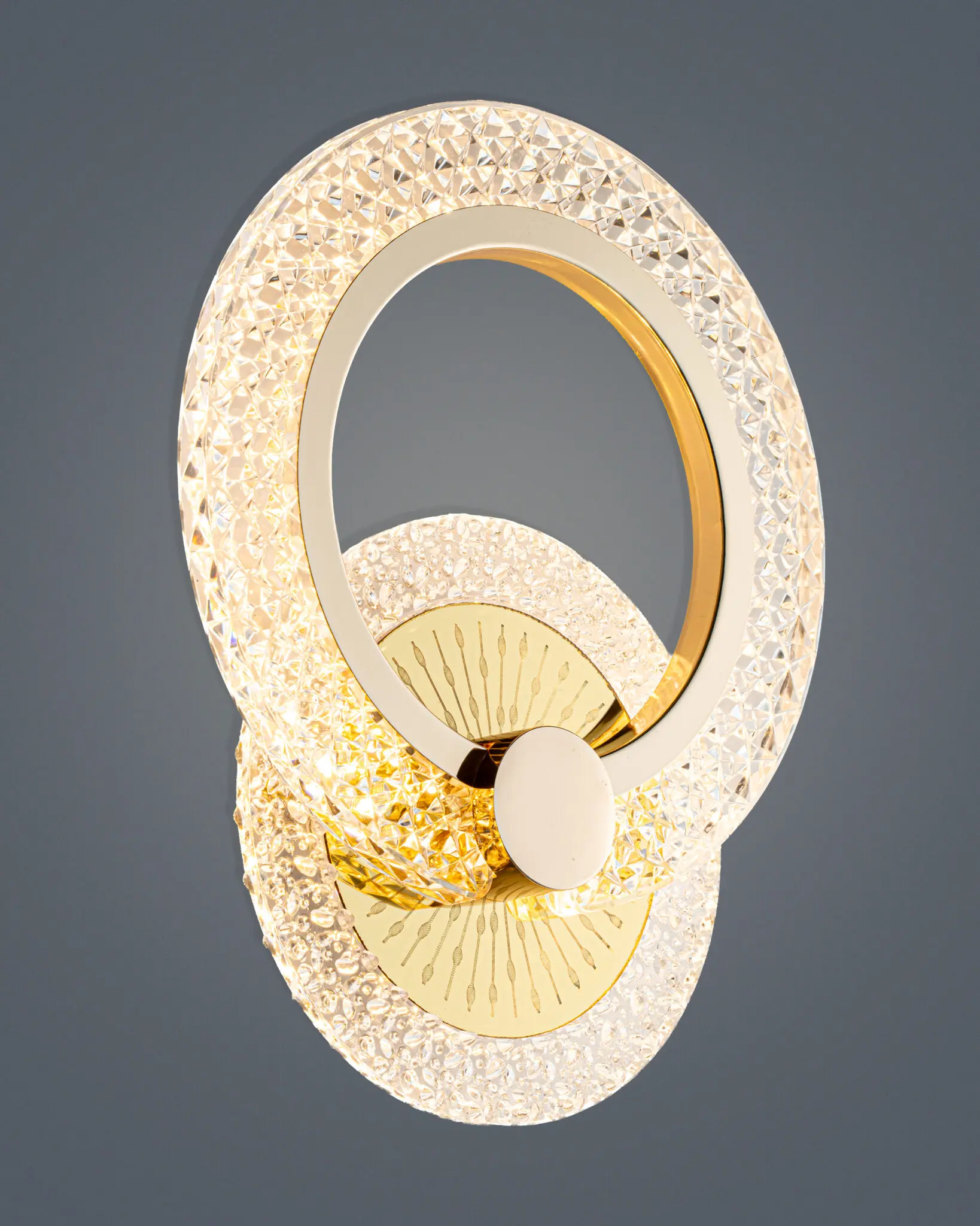 Đèn Tường Pha Lê VRG-AC4285 mang lại ấn tượng mạnh mẽ ngay từ ánh nhìn đầu tiên. Thiết kế hình oval được cách điệu từ hai vòng tròn đồng tâm, tạo cảm giác rất cân đối và hài hòa. Sự kết hợp giữa pha lê sáng bóng và các chi tiết kim loại mạ vàng thấp thoáng trong tổng thể làm nổi bật sự sang trọng, quý phái vượt bậc so với các mẫu đèn tường truyền thống. Thiết kế được chăm chút từng chi tiết, từ đường cong mềm mại đến những sắc thái ánh sáng lung linh, làm nổi bật vẻ đẹp tuyệt đối. Khi xem kỹ, bạn sẽ thấy mỗi chi tiết đều rất được chăm chút: độ dày của khung được tính toán tỉ mỉ để đảm bảo độ bền và tính thẩm mỹ. Các vòng tròn được kết nối khéo léo và chắc chắn, tạo nên một tổng thể đồng điệu, dễ dàng hòa hợp vào mọi không gian nội thất. Mặt sau đèn được trang trí những hoa văn đẹp mắt, kết hợp với đai viền vàng gold khiến cho sản phẩm trở nên độc đáo và khác biệt.