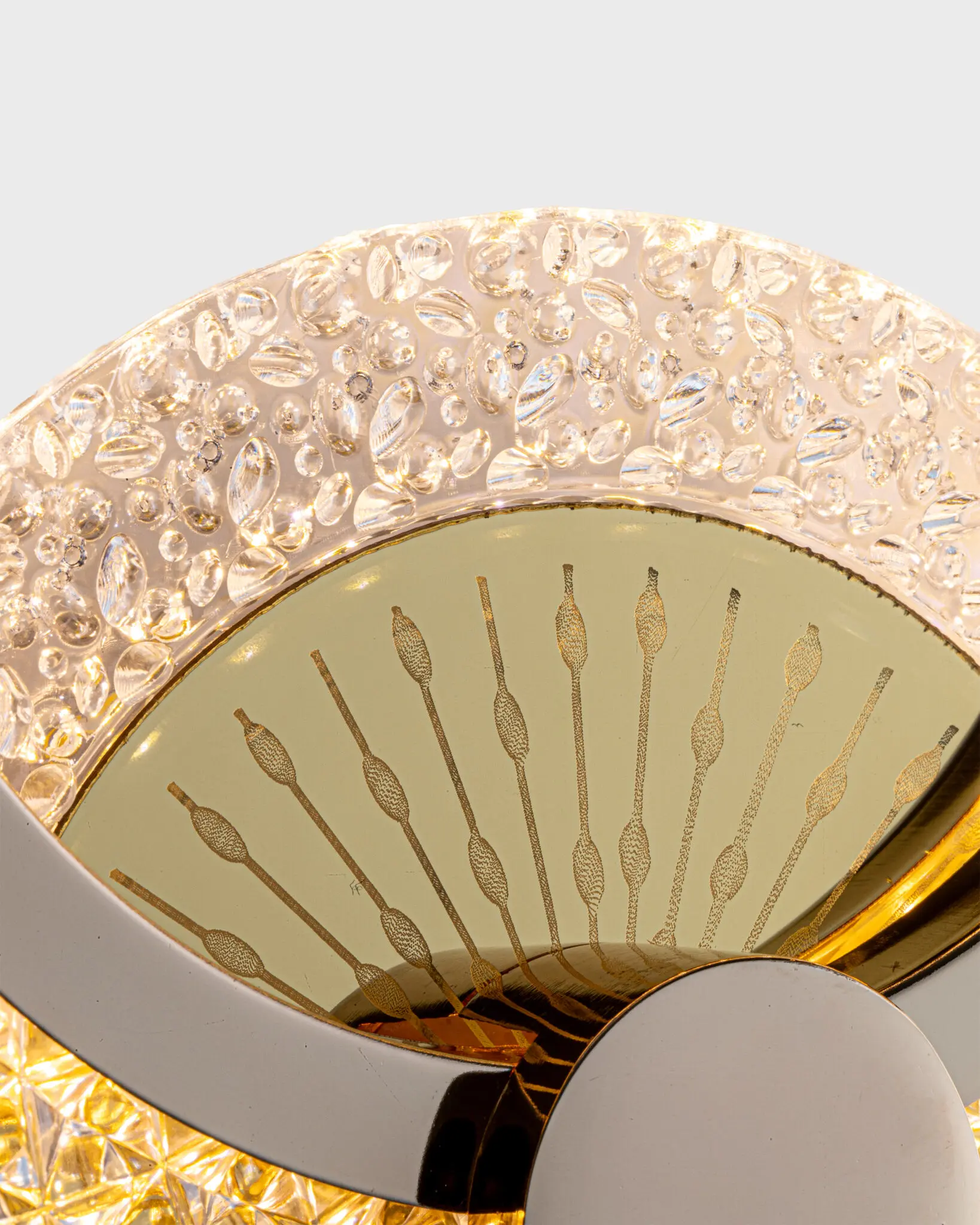 - Các điểm nhấn trang trí như viên đá pha lê đều được cắt gọt tỉ mỉ, đảm bảo bắt sáng tốt nhất, tạo ra những hiệu ứng ánh sáng lung linh khi bật đèn.