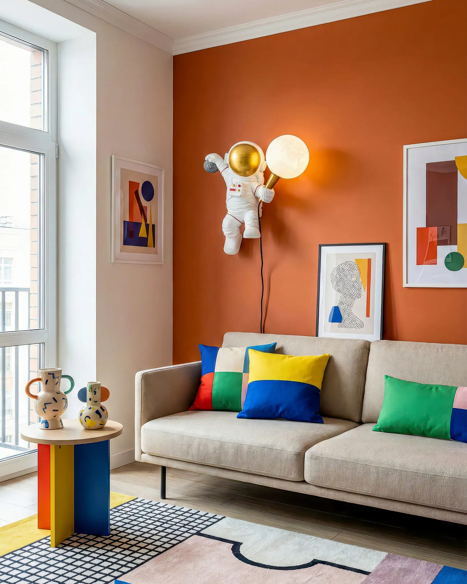Đèn Tường Hình Phi Hành Gia hoàn toàn phù hợp cho phòng ngủ trẻ em, phòng chơi (Playroom) hoặc góc làm việc sáng tạo. Diện tích lý tưởng để lắp đặt là trên các mảng tường trống, nơi cần sự trang trí vui mắt. Đối với phòng ngủ, vị trí lý tưởng nhất là hai bên đầu giường hoặc cạnh bàn học, thay thế cho đèn bàn chiếm diện tích. Bạn có thể phối hợp chiếc đèn với các món nội thất khác như giấy dán tường họa tiết vũ trụ, chăn ga gối đệm hình sao hỏa để tạo nên một căn phòng chủ đề không gian (Space Theme) hoàn chỉnh. Tông màu xanh dương hoặc xám của tường cũng sẽ giúp chiếc đèn nổi bật hơn, tạo ra một không gian sống độc đáo và kích thích trí tưởng tượng. Chiếc đèn không chỉ mang đến ánh sáng mà còn tạo nên một không gian vui tươi, sáng tạo, khiến cho trẻ em cảm thấy thích thú và yêu mến căn phòng của mình hơn. Ảnh hưởng của ánh sáng lên tâm trạng cũng rất lớn, chiếc đèn này tạo ra bầu không khí tích cực và nuôi dưỡng ước mơ.