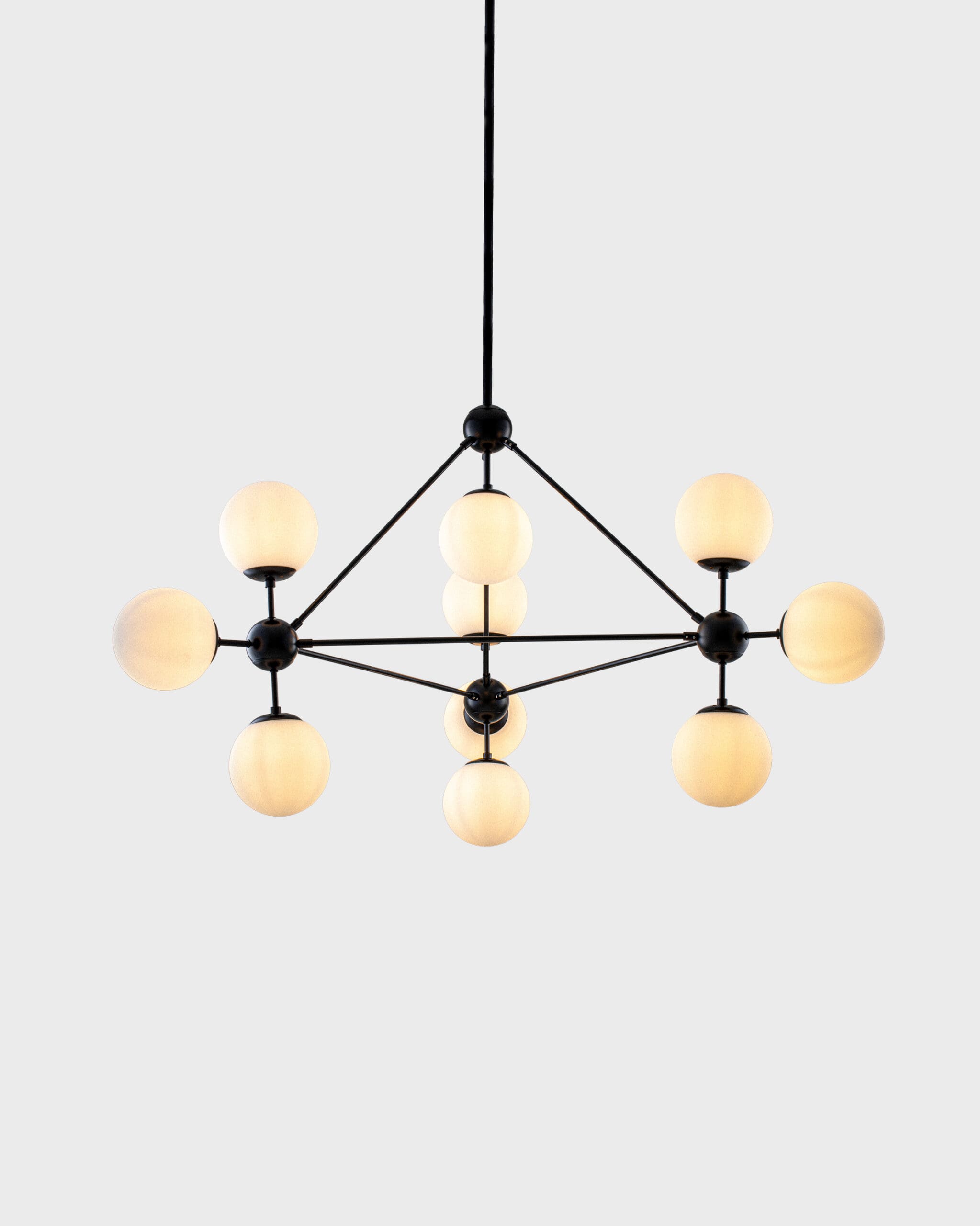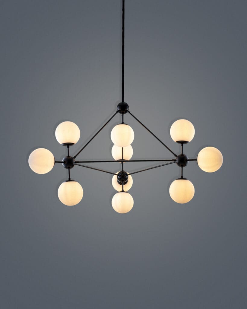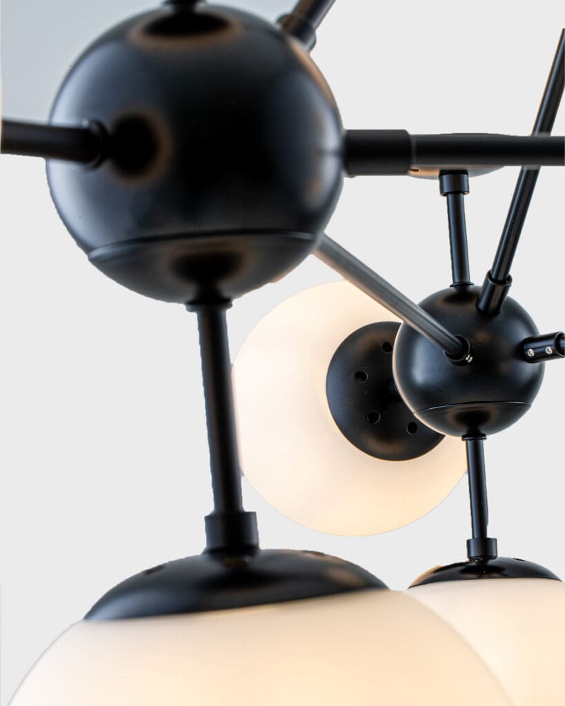 Màu sắc của sản phẩm thuộc hành Kim với màu đen bóng, điều này giúp cho chủ nhân thu hút tài lộc và sự thịnh vượng. Chất liệu hợp kim cũng thuộc hành Kim, giúp sản phẩm có tính bền bỉ theo thời gian. Theo phong thủy, việc đặt đèn chùm ở vị trí trung tâm giúp cân bằng năng lượng cho không gian sống. Về mặt tâm linh, ánh sáng tượng trưng cho sự sáng suốt, thịnh vượng và tài lộc. Hình dáng của đèn chùm còn mang ý nghĩa như một biểu tượng cho sự viên mãn và thành công. Số lượng bóng đèn cũng có thể ảnh hưởng đến phong thủy, vì vậy nếu bạn là người cầu mong may mắn, hãy chọn số lượng bóng đèn phù hợp với bản mệnh của mình.