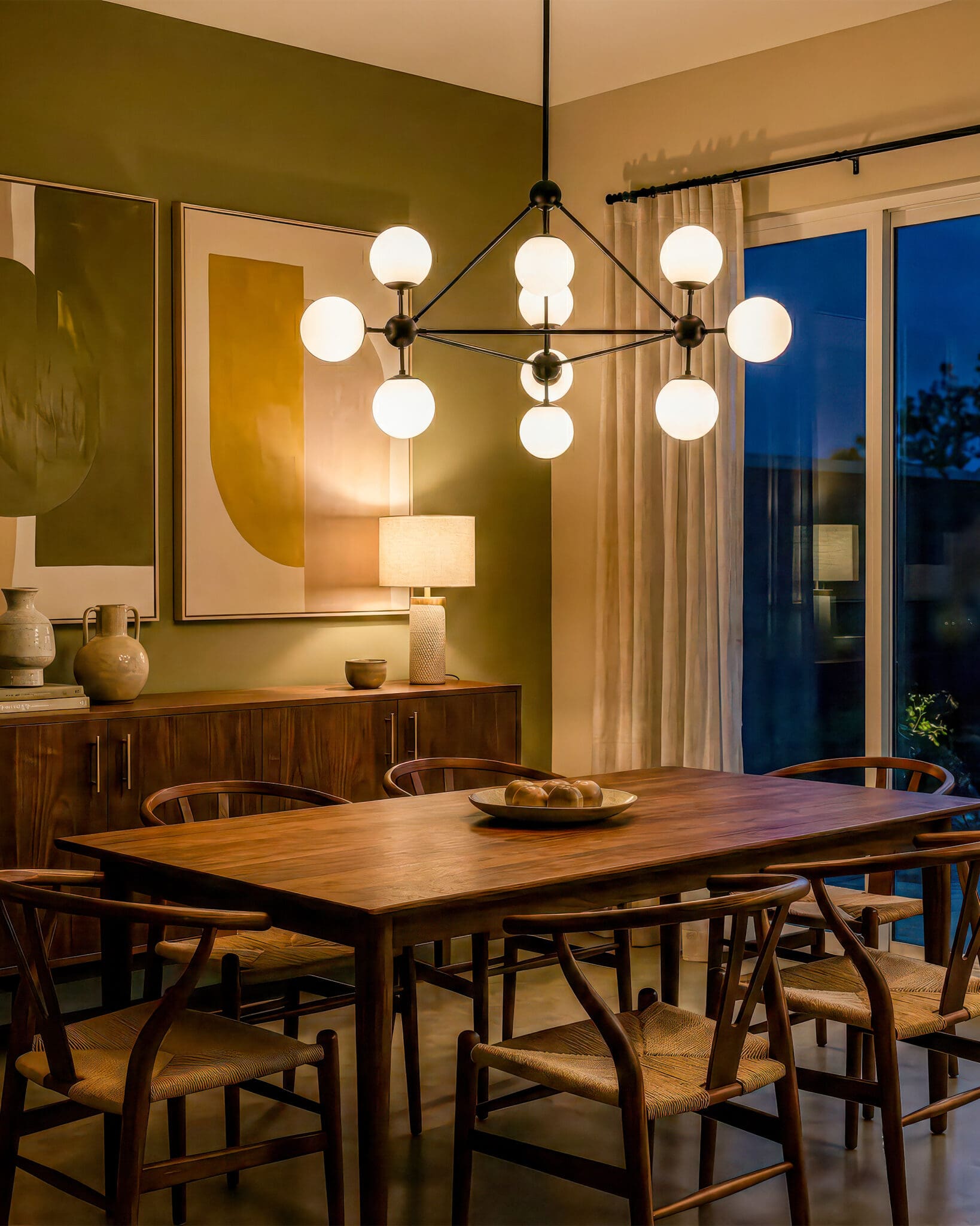 - Các bóng đèn được bố trí đồng đều xung quanh, tạo ra ánh sáng đồng nhất và mềm mại, mang đến không gian sống tươi sáng và dễ chịu.