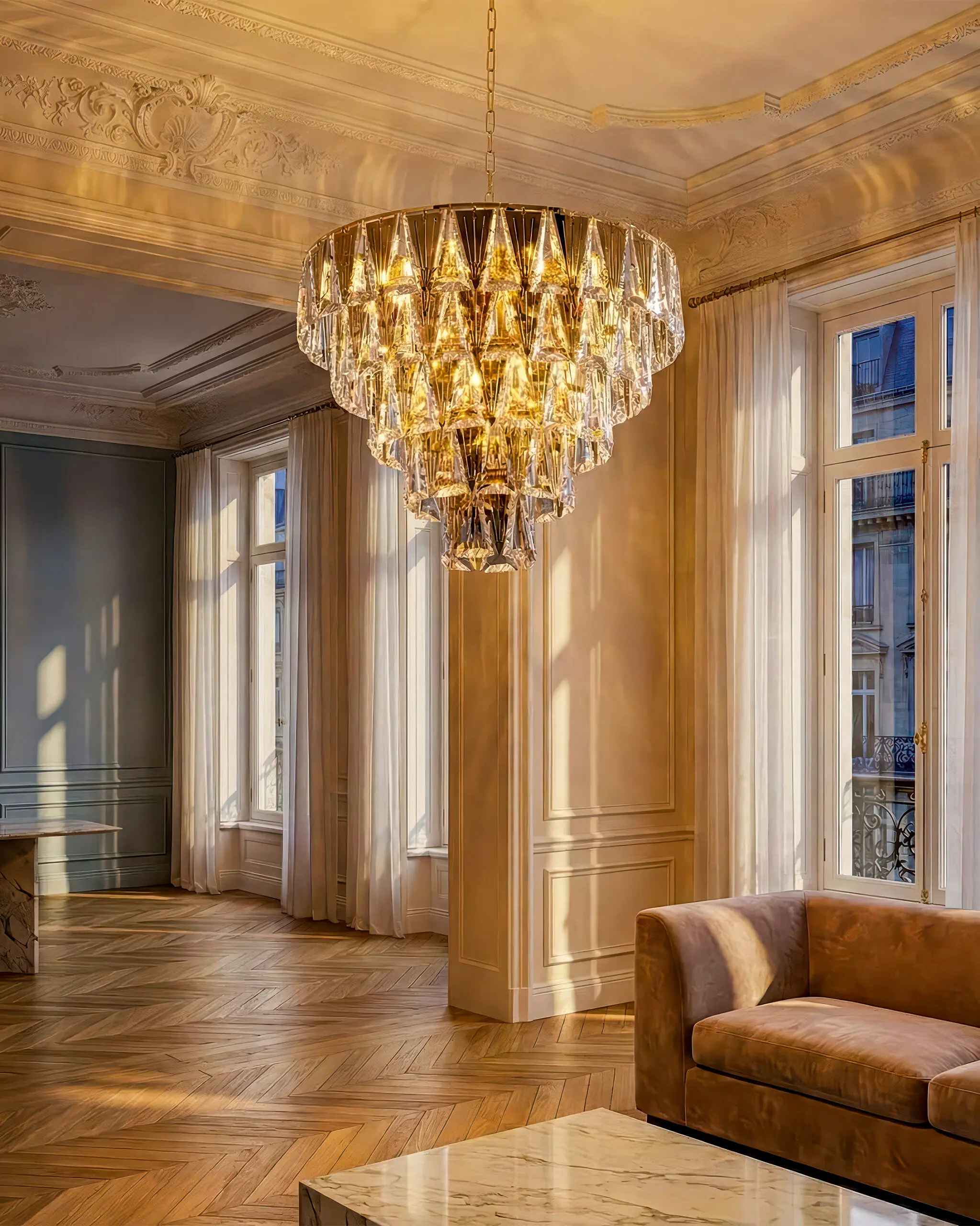 Đèn Chùm Pha Lê Sang Trọng Hình Chóp Vàng Gold Hiện Đại VRG-TL6839
