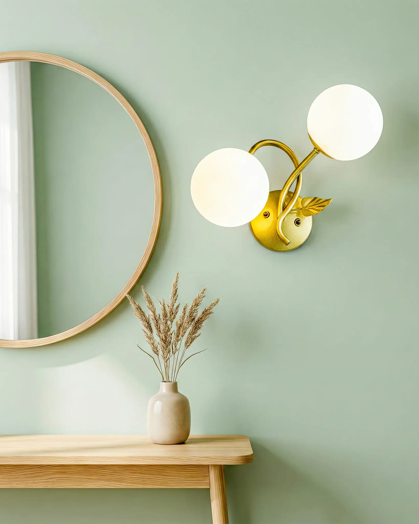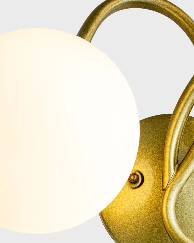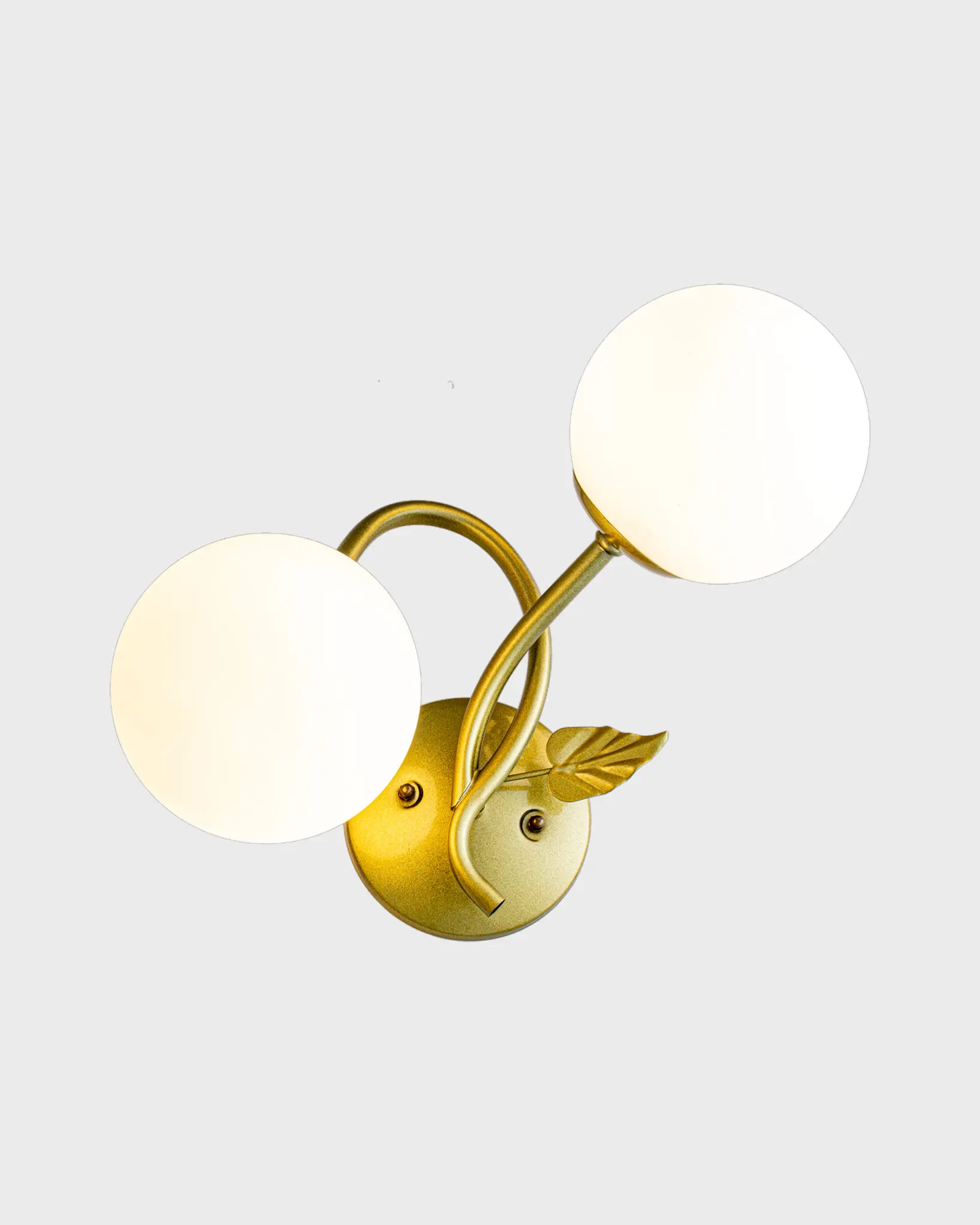 Thiết kế của Đèn Tường Đồng Cổ Điển với hai bóng tròn trắng mang đến cảm giác nhẹ nhàng và tươi mới. Vẻ ngoài tinh tế của chiếc đèn không chỉ là một phụ kiện, mà còn là điểm nhấn không thể thiếu cho bất kỳ không gian nào. Kiểu dáng sạch sẽ, thanh thoát, mái vòm nhẹ nhàng như chăm sóc cho mỗi ánh sáng, giúp tạo ra một không gian sống ấm áp không khác gì trong những bức tranh cổ điển. Từng chi tiết của đèn ấy đều được chăm chút tỉ mỉ, từ độ dày của khung đèn tới những đường cong mềm mại, tuyệt đẹp. Khung đồng được uốn lượn tinh tế và các vòng tay nâng đỡ hai bóng tròn như một bản hòa tấu giữa chất liệu và ánh sáng. Điểm nhấn là những chiếc lá hoàn thiện bằng đồng, khiến cho sản phẩm thêm phần thanh lịch và gần gũi với thiên nhiên.