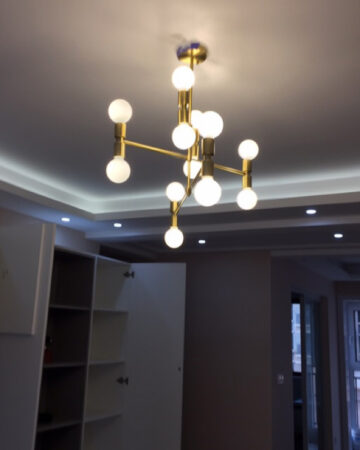 Đèn chùm trang trí THCN 108-18 có kiểu dáng đơn giản nhưng không kém phần sang trọng và độc đáo. Chiếc đèn có thiết kế hình các đường thẳng đơn giản bằng hợp kim nhôm, xi màu vàng bóng hiện đại. Đèn sử dụng 12 bóng LED E27 tiết kiệm điện, đem lại vẻ rực rỡ cho ngôi nhà của bạn.