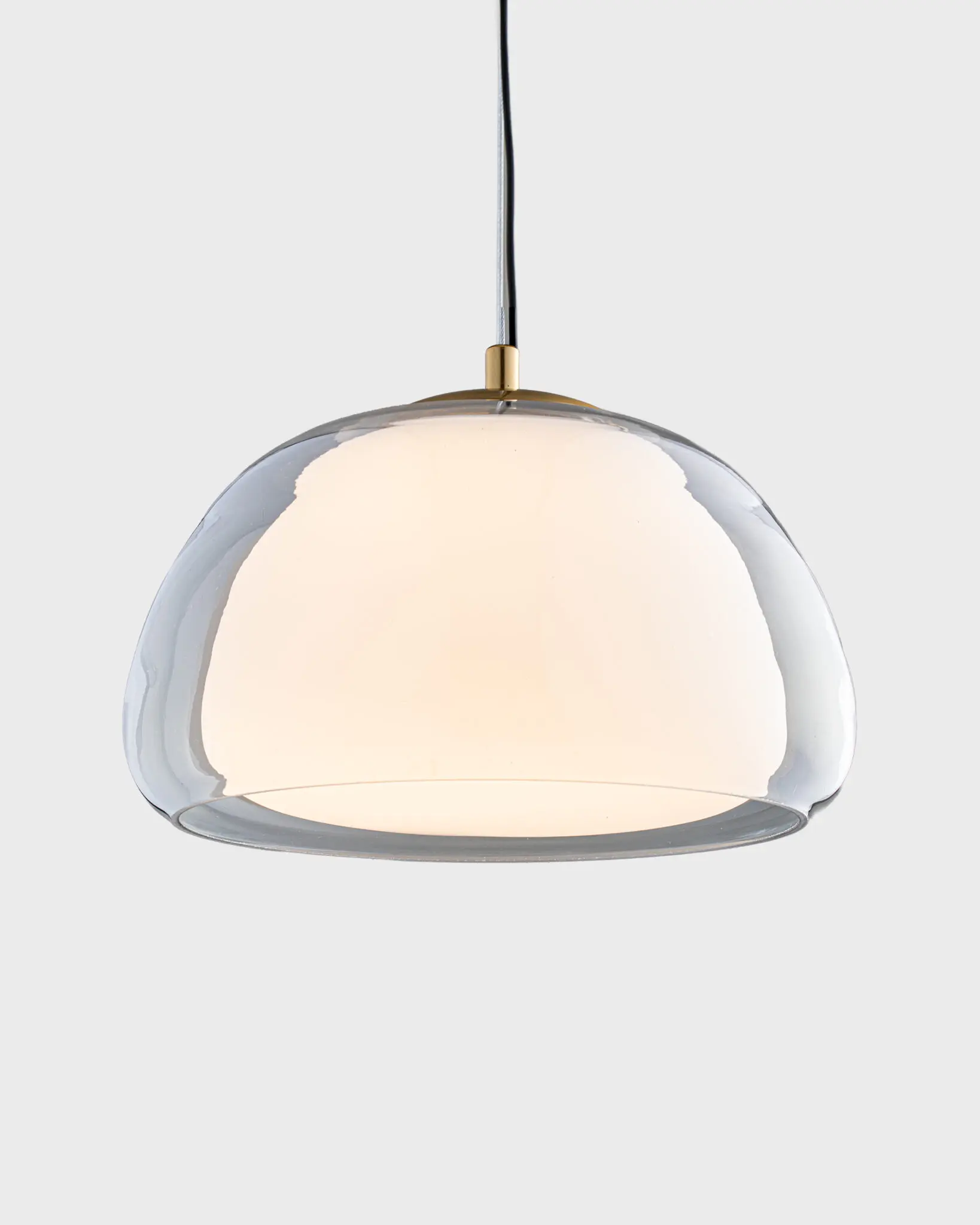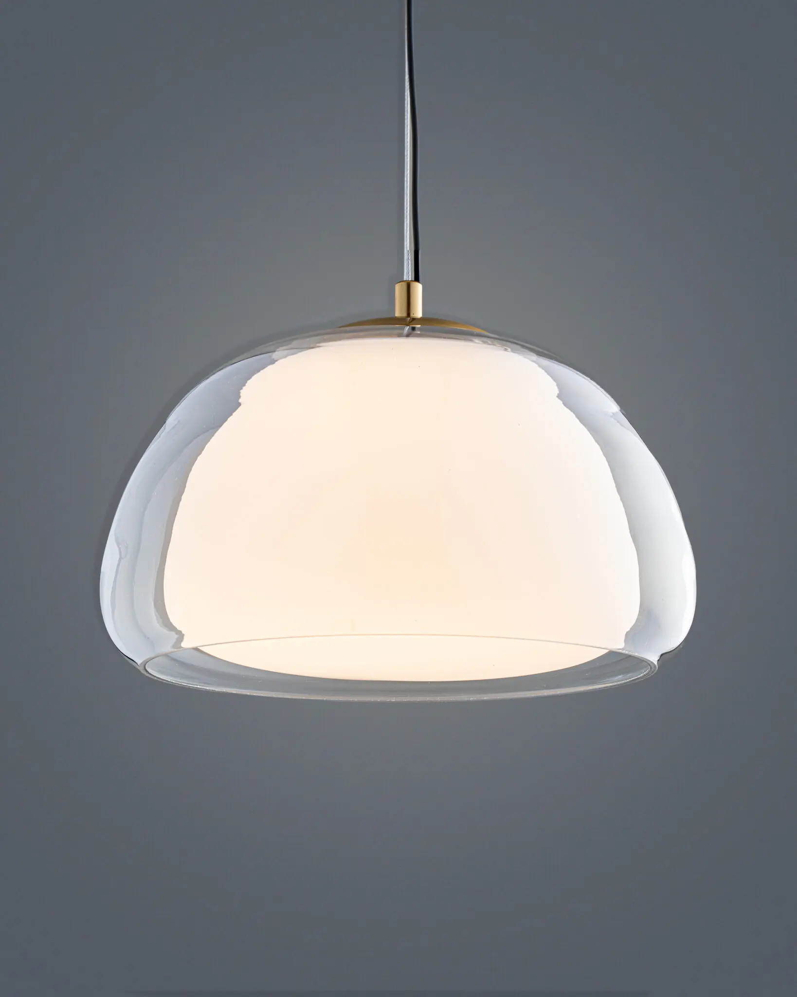 Chiếc đèn thả này mang lại sự cân đối hoàn hảo với hình dạng tròn, tạo cảm giác hiện đại và thanh lịch. Tay nghề khéo léo của nghệ nhân chế tác đã giúp sản phẩm này thoát khỏi những thiết kế đèn truyền thống, để lại ấn tượng đậm nét ngay từ cái nhìn đầu tiên. Những đường cong tinh tế của thân đèn hòa quyện với ánh sáng, tạo nên một sự hòa hợp đầy nghệ thuật. Các yếu tố thiết kế chính đều tập trung vào sự tinh giản, nhưng không kém phần cuốn hút. Khung treo chắc chắn được chế tác từ hợp kim nhẹ nhàng, nổi bật với tông màu vàng sang trọng. Độ trong suốt của chao đèn thủy tinh mang lại hiệu ứng ánh sáng lung linh, kỳ diệu khi được chiếu sáng. Sự kết hợp này không chỉ tạo cảm giác thanh thoát mà còn gợi lên tính thẩm mỹ tuyệt vời.