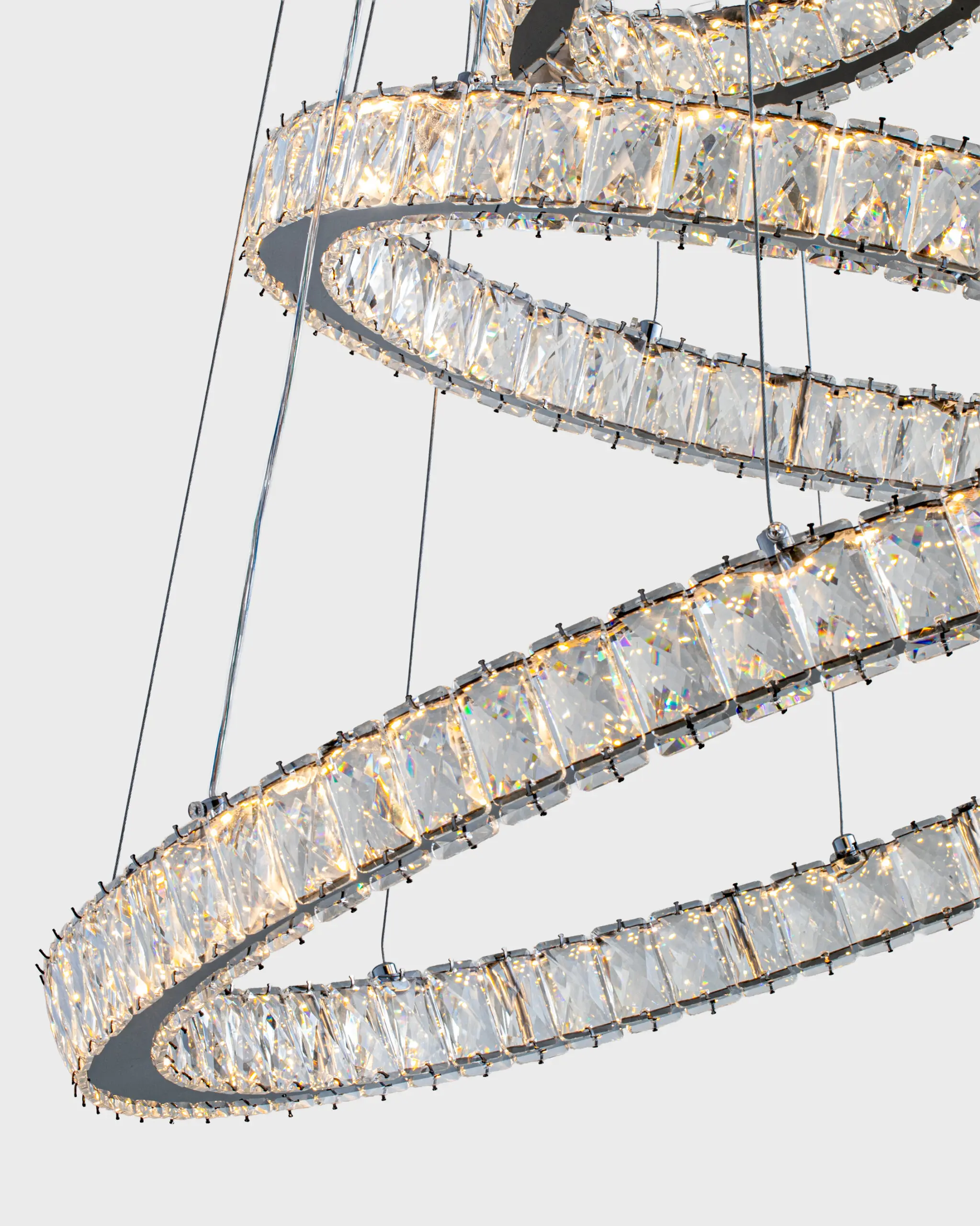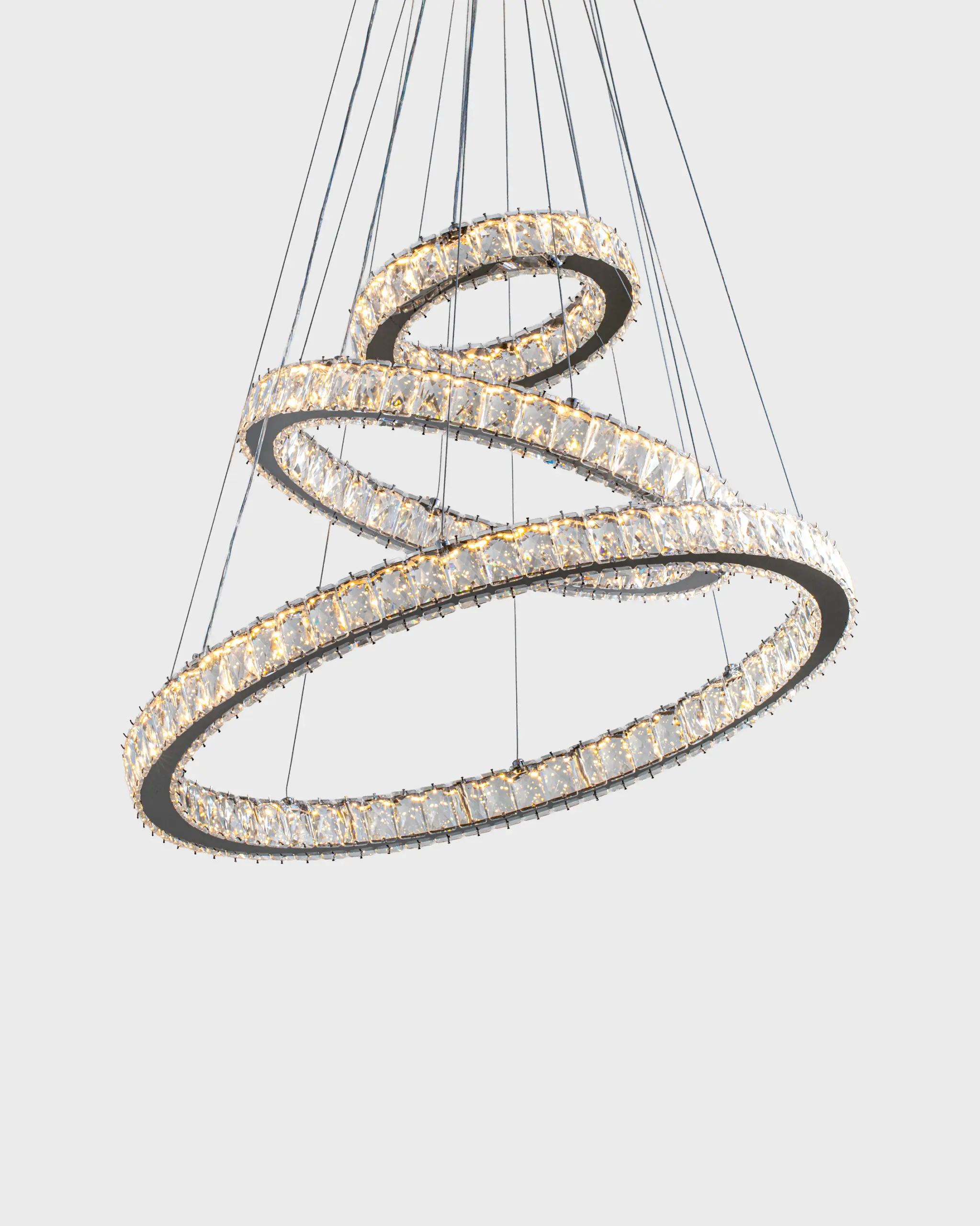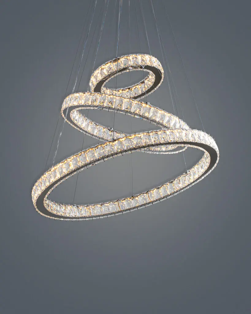 Với thiết kế tinh tế, Đèn Thả Pha Lê Hiện Đại VRG-7201-3D mang đến một vẻ đẹp sang trọng không thể nhầm lẫn. Hình dáng tổng thể của sản phẩm là những vòng tròn đan xen, tạo ra một cảm giác hài hòa và nổi bật. Sự giao thoa giữa không gian và ánh sáng trong thiết kế không chỉ thể hiện tính thẩm mỹ tối ưu mà còn mang lại sự khác biệt rõ rệt so với những mẫu đèn thả truyền thống. Việc sử dụng tỷ lệ vàng trong thiết kế thể hiện sự cân đối, dễ chịu cho mắt nhìn. Chi tiết của từng bộ phận đèn là những điểm nổi bật không thể không nhắc đến. Khung đèn được chế tác từ hợp kim chắc chắn, mang đến độ bền bỉ vượt trội. Những họa tiết trang trí tinh xảo cùng đường cong hoàn mỹ của đèn tạo cảm giác thanh thoát, mềm mại. Đặc biệt, cách các lớp đèn được xếp chồng lên nhau tạo nên chiều sâu cho ánh sáng, làm nổi bật kiến trúc của sản phẩm. Đây là một điểm khác biệt lớn so với những mẫu đèn đơn giản, không có chiều sâu về mặt thiết kế.