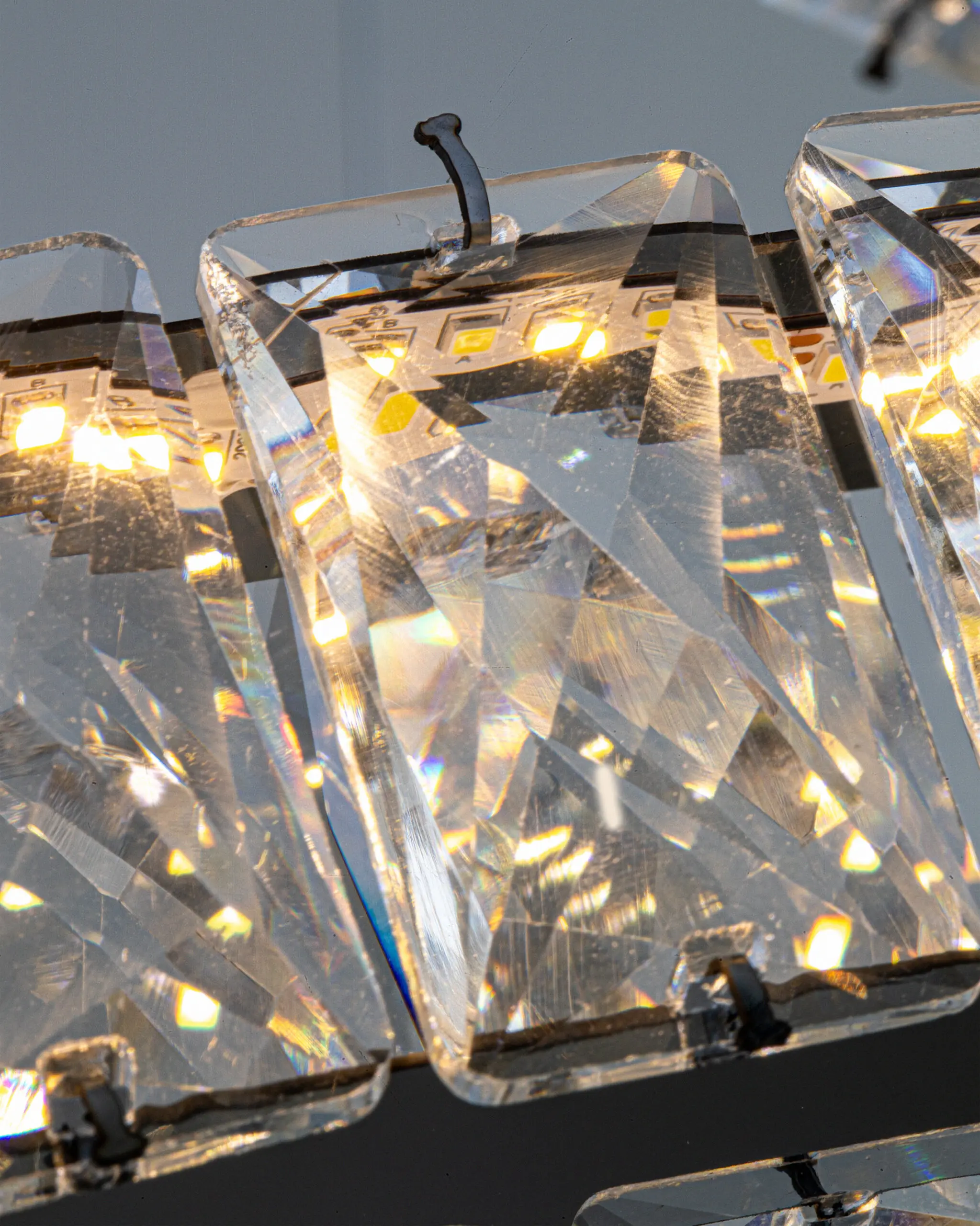 Khung đèn được làm từ hợp kim nhôm cao cấp, nổi bật với khả năng chống oxy hóa và chống bám bụi, đảm bảo sản phẩm luôn giữ được vẻ đẹp nguyên vẹn theo thời gian. Quy trình xử lý bề mặt thông minh với lớp mạ tĩnh điện giúp đèn luôn sáng bóng, không bị phai màu, mang lại sự trẻ trung, hiện đại cho không gian. Chao đèn được chế tác từ pha lê K9, một loại chất liệu cao cấp với độ trong suốt đặc biệt, tạo hiệu ứng tán sắc ánh sáng tuyệt vời. Khi ánh sáng chiếu qua chao đèn, những tia sáng sẽ phân tán ra nhiều màu sắc khác nhau, tạo nên vẻ huyền ảo lấp lánh như ánh sao. Điều này không chỉ mang đến ánh sáng lung linh mà còn tạo ra cảm giác thú vị và cuốn hút cho không gian. Khi đèn được bật vào ban đêm, ánh sáng sẽ tạo ra các bóng đổ nghệ thuật trên tường và trần, làm cho không gian trở nên sinh động và cuốn hút hơn. Sản phẩm được trang bị bóng đèn LED E14 với công suất lớn, đem lại ánh sáng ấm áp và dễ chịu, lý tưởng cho không gian sống. Nhiệt độ màu vào khoảng 3000K, mang đến ánh sáng vàng ấm, tạo cảm giác gần gũi và thân thiện. Đặc biệt, bóng đèn LED cũng giúp tiết kiệm điện năng tối đa, có tuổi thọ lên đến 25.000 giờ, giúp giảm thiểu chi phí vận hành cho người sử dụng.