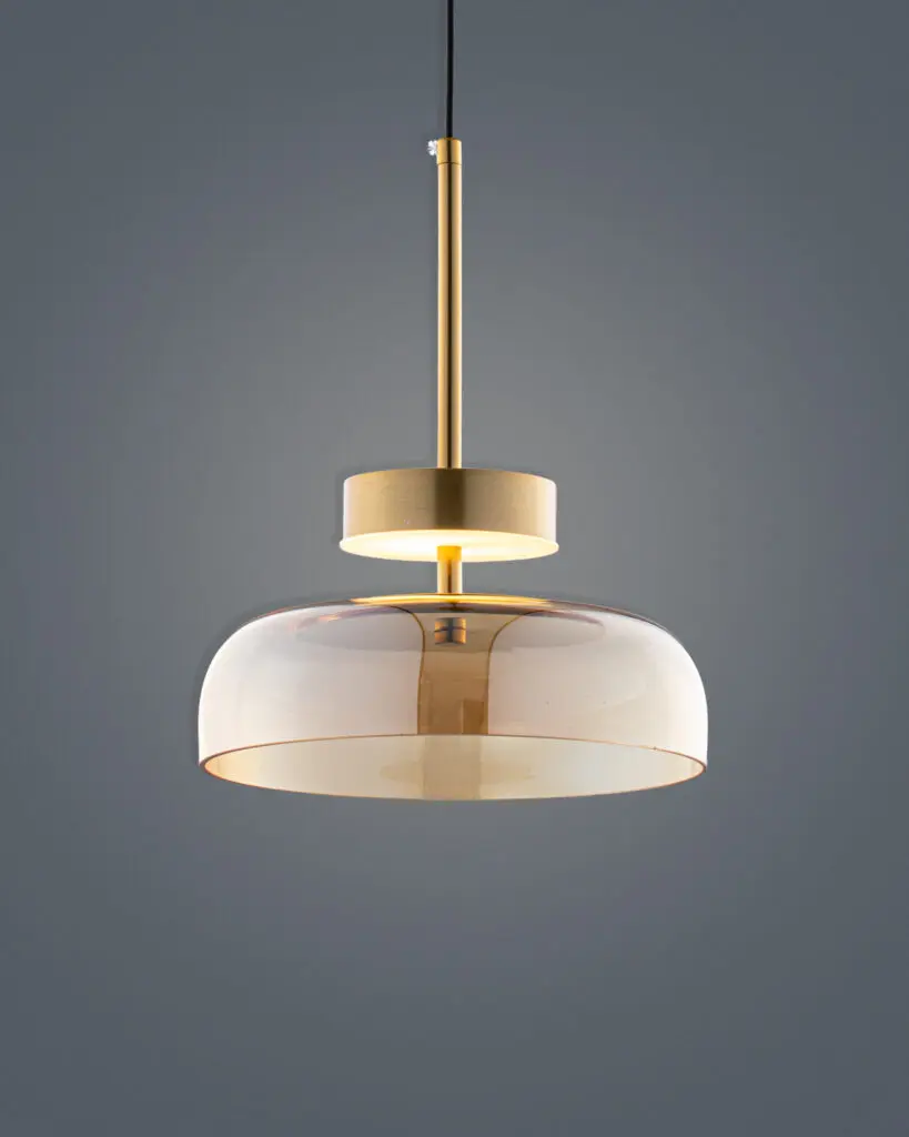 - Khung đèn bằng đồng vàng mang đến sức mạnh và sự sang trọng được bố trí theo cách đặc biệt, giúp phân tán ánh sáng đều khắp không gian.