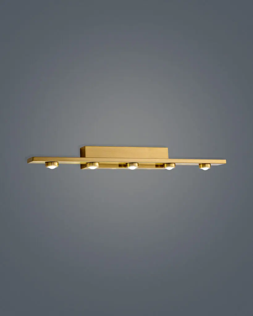 Sản phẩm này chinh phục người nhìn ngay từ cái nhìn đầu tiên nhờ vào thiết kế hiện đại và trang nhã. Hình dáng độc đáo cùng với màu vàng gold nổi bật, tạo nên sự sang trọng mà không diễm lệ, khiến không gian trở nên cuốn hút bất ngờ. So với các kiểu đèn truyền thống, mẫu đèn này thể hiện một phong cách rất riêng, mang âm hưởng của sự tối giản trong thiết kế nhưng lại không kém phần phong phú về ý tưởng. Cảm giác đầu tiên thấy được chính là sự hài hòa trong các tỷ lệ thiết kế, đường nét mạnh mẽ nhưng vẫn đầy tinh tế, tránh được sự cứng nhắc của nhiều sản phẩm thông thường. Ngoài ra, từng chi tiết của đèn được chăm chút tỉ mỉ, từ độ dày của khung cho tới những điểm nhấn trang trí giúp sản phẩm thêm phần nổi bật. Các bộ phận được kết nối một cách chắc chắn, cho một tổng thể vững chãi nhưng vẫn không mất đi yếu tố thẩm mỹ. Đặc biệt, với thiết kế khung vuông vức kết hợp với các bóng đèn tròn, tạo ra sự tương phản thú vị, dễ dàng thu hút ánh nhìn và tạo điểm nhấn cho bất kỳ không gian nào.
