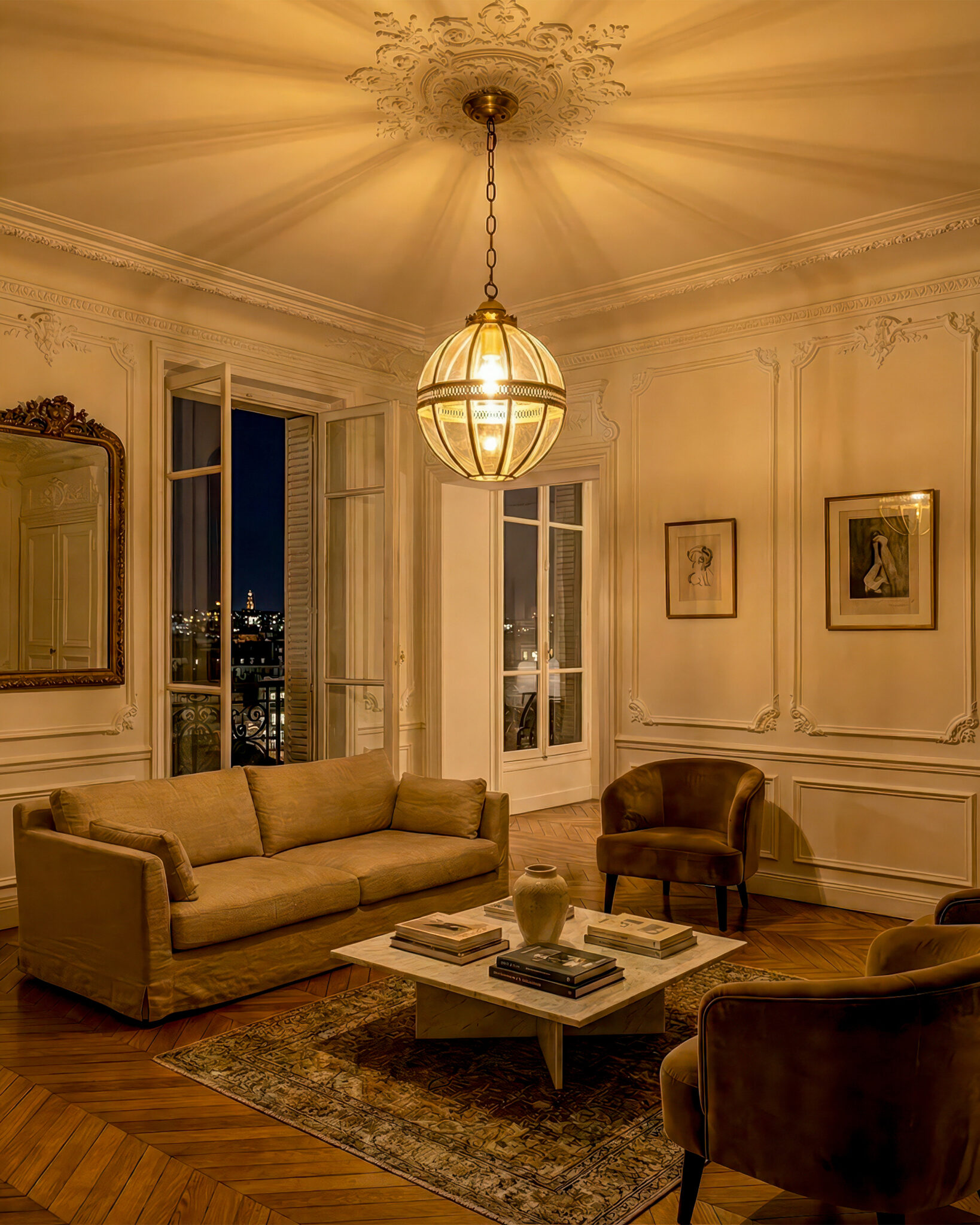 Chúng ta thường không chỉ nhìn thấy ánh sáng mà còn cảm nhận được vẻ đẹp mà nó mang lại. Chiếc đèn thả pha lê hình cầu VRG-TD8118 với thiết kế ánh vàng đồng đã gây ấn tượng mạnh mẽ ngay từ cái nhìn đầu tiên. Sự cân đối và hài hòa của thiết kế này khác biệt hoàn toàn so với những chiếc đèn thông thường. Hình dáng cầu tròn trịa thể hiện sự viên mãn và hoàn hảo, tạo cảm giác ấm cúng mà không kém phần sang trọng. Đường nét và tỷ lệ vàng trong thiết kế được thể hiện rõ nét, điểm nhấn ánh sáng từ bên trong làm cho không gian trở nên sống động hơn bao giờ hết. Đèn VRG-TD8118 không chỉ đơn thuần là một sản phẩm nội thất, mà là một tác phẩm nghệ thuật, nơi những chi tiết được chế tác tinh xảo đến từng góc cạnh. Đường viền chắc chắn, các khung kính trong suốt được sắp xếp một cách tỉ mỉ, kết nối với nhau một cách hoàn hảo. Tất cả những điều này không chỉ tạo ra vẻ đẹp thẩm mỹ mà còn thể hiện rõ nét phong cách thiết kế hiện đại, tránh xa sự đơn điệu của các sản phẩm truyền thống.