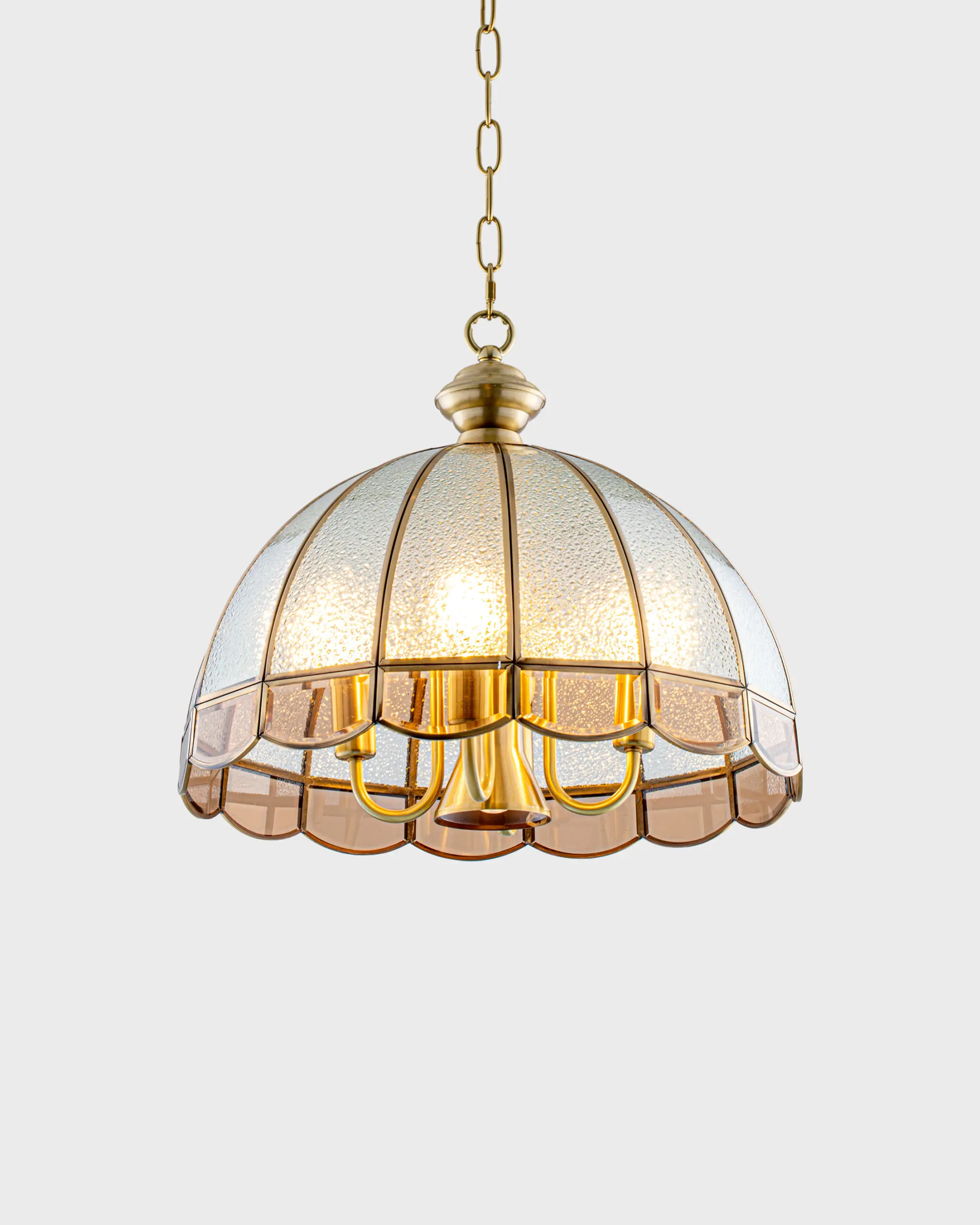 - Hệ thống treo chắc chắn với chuỗi kim loại được gia cố, đảm bảo độ an toàn và vững chãi cho đèn.