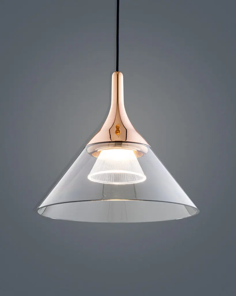 Thiết kế của VRG-THD25 mang lại cảm giác hài hòa và tinh tế, với hình dáng nữ tính, gợi cảm. Đèn mang đến ấn tượng ngay từ cái nhìn đầu tiên, với kiểu dáng vuông vắn nhưng không kém phần mềm mại, tạo ra điểm nhấn độc đáo so với các mẫu đèn truyền thống. Đường cong uyển chuyển cùng sự phối hợp giữa chất liệu và màu sắc mang đến một vẻ đẹp riêng biệt, khiến mọi ánh nhìn đều dừng lại để chiêm ngưỡng. Khi quan sát kỹ hơn, các chi tiết trên thân đèn được hoàn thiện tỉ mỉ và tinh xảo. Khung chính được làm bằng hợp kim chắc chắn với lớp mạ vàng đồng cao cấp, nổi bật dưới ánh sáng. Không chỉ là yếu tố thị giác, mà còn là sự đảm bảo về độ bền và thời gian sử dụng. Từ kết nối giữa các bộ phận đến các họa tiết trang trí được chạm khắc tinh vi đều mang đến cảm giác sang trọng và đẳng cấp, làm cho VRG-THD25 trở thành lựa chọn ưu việt cho những không gian cần điểm nhấn.