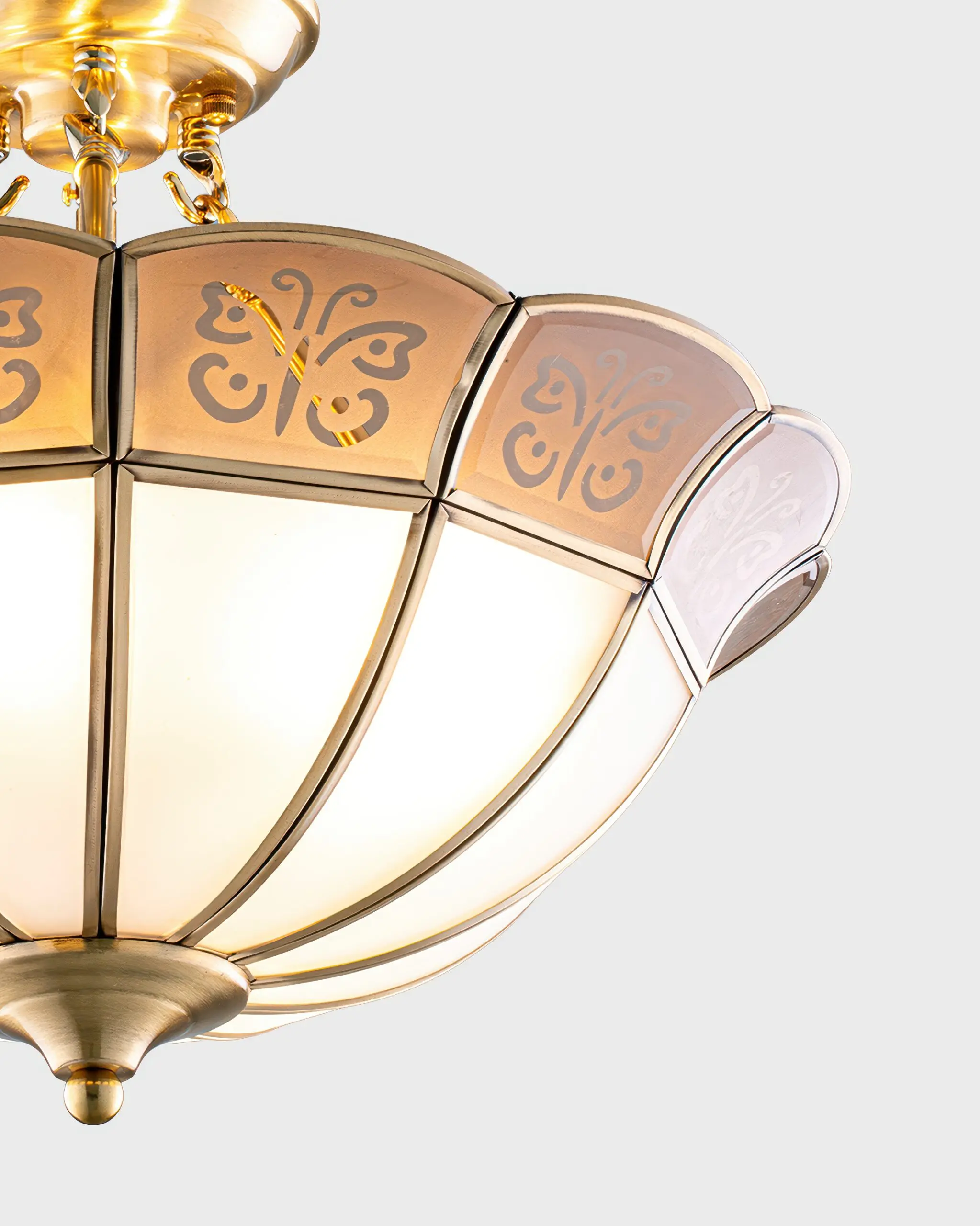 Hợp kim siêu bền: Khung đèn sử dụng hợp kim nhẹ nhưng cực kỳ chắc chắn, được xử lý bề mặt tinh vi và mạ vàng hoàn thiện. Điều này giúp đèn chống oxy hóa, giữ độ bóng và bền màu vượt trội ngay cả trong điều kiện khí hậu ẩm.
