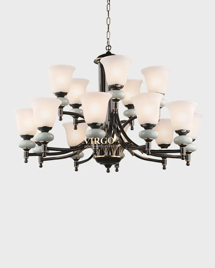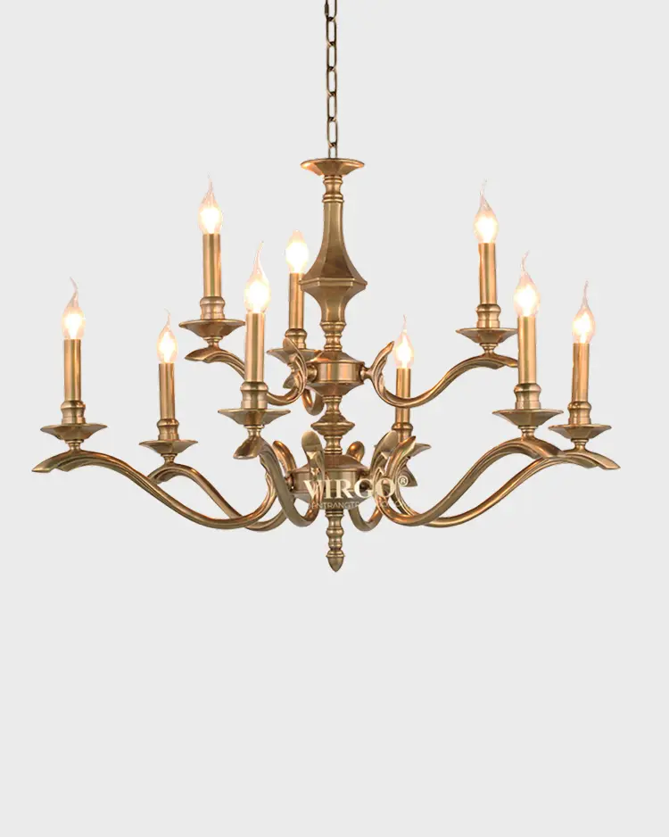 Pha lê K9 là vật liệu được ưa chuộng hiện nay được sử dụng đẹp mắt trên Đèn chùm đồng pha lê trang trí VIRGO L001. Pha lê K9 với các đặc tính trong suốt và truyền sáng tốt, nhẹ và cứng cáp, giúp tạo được kiểu dáng vô cùng thú vị cho bộ đèn.